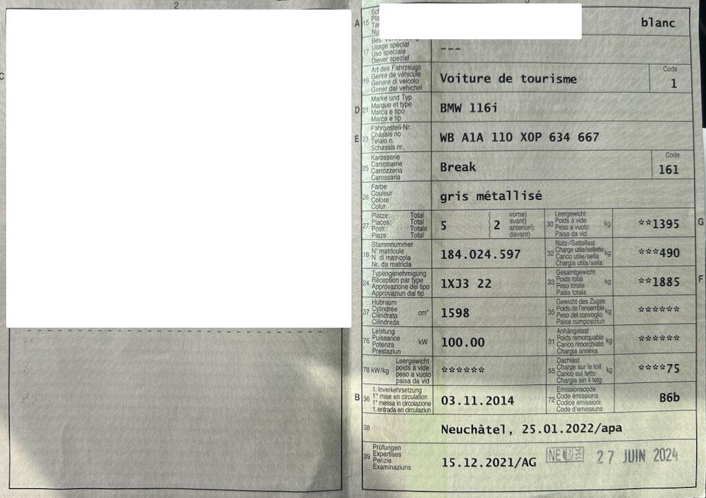 Fahrzeug wurde gestohlen und wieder aufgefunden. Dabei wurde eine Beschädigung an der Stossstange und Scheinwerfer vorne links festgestellt. Die weissen Spuren auf dem Lack sind Pulverrückstände von der Spurensicherung (Polizei) und lassen sich abwaschen. Motor Getriebe Vorderachse Hinterachse Airbags ausgelöst: 0 unbekannt ( Abfallcode 16.01.04ak )