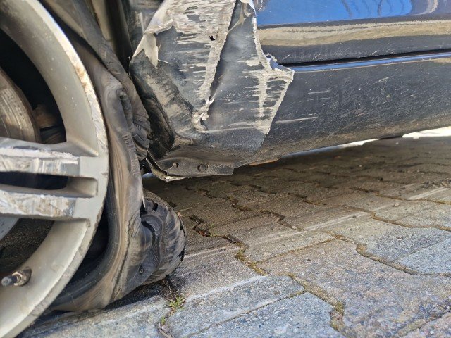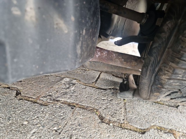 Vorderachse ist beschädigt. Aufhängungsteile vorne links beschädigt. Risiko Lenkung.