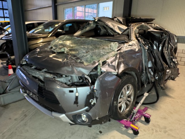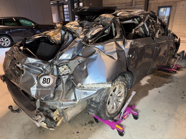 Fahrzeug ist NICHT fahrbar. Fahrzeug ist NICHT rollbar. Fahrzeug lag auf der Seite. Fahrzeug hat sich mehrmals überschlagen. Motor startet nicht, Ursache unbekannt. Batterie leer.