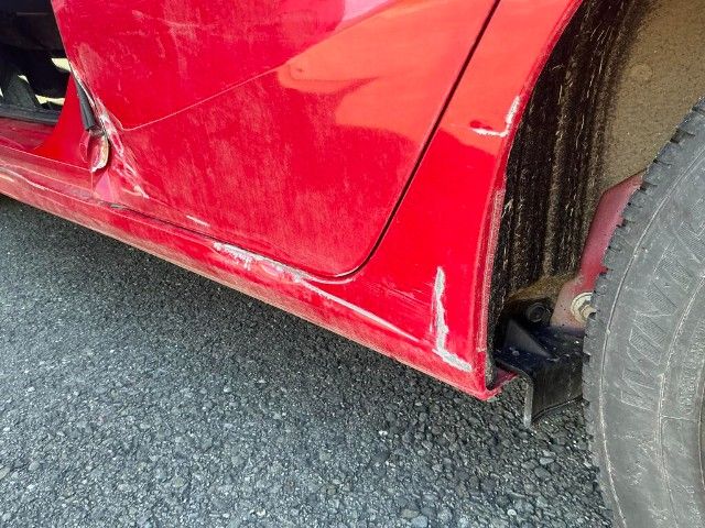 Kotflügel, Türen, Unterboden, Rückspiegel, vorderes Fahrwerk, Lenkung und Federung sind beschädigt.