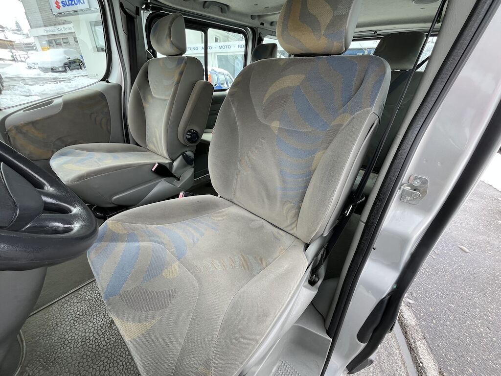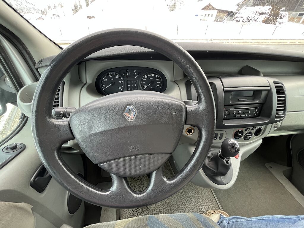 Dieser Renault Trafic fährt sich sehr gut.MFK fällig und möglicherweise ist die Kupplung bald fällig, in kaltem Zustand kann der Rückwärts-Gang manchmal nicht beim ersten Mal eingelegt werden. Geht dann aber beim 2./3. Mal wieder. Bei der Fahrt und auch nach dem Starten, wenn Fahrzeug nicht länger gestanden ist, geht es einwandfrei. KM garantiert, Serviceheft vorhanden. Es sind 5 Sitzplätze vorhanden, am Fahrzeugboden sind Halterungen für die 3. Sitzreihe vorhanden (wäre mit einer Sitzbank erweiterbar auf 8 Plätze)Mit Anhängerkupplung, Klima uvm.Die Winterpneu auf Fahrzeug sind neuwertig(Die Kundin hätte zusätzlich 4 Sommerräder mit neuwertigen Reifen, bei Interesse können diese gegen Aufpreis dazu gekauft werden)