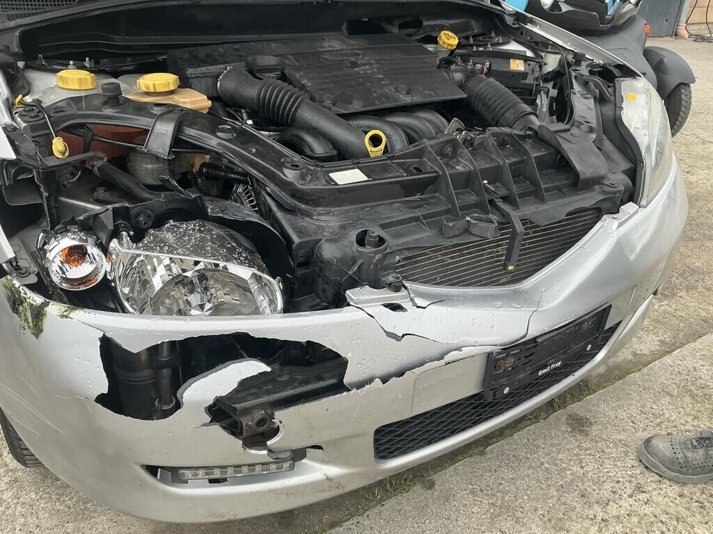 Pare-chocs avant enfoncé Capot moteur refoulé Tôle avant pliée Radiateurs moteur et climatisation pliés Vase d'expansion direction cassé Phare avant droit cassé Aile avant droit pliée Dommage préexistant : Aile arrière droite pliée Pare-chocs arrière râpé Motor Getriebe Vorderachse Hinterachse Airbags ausgelöst: 0 unbekannt ( Abfallcode 16.01.04ak )