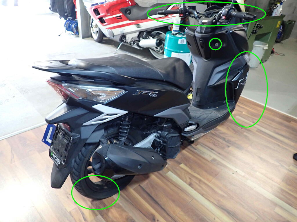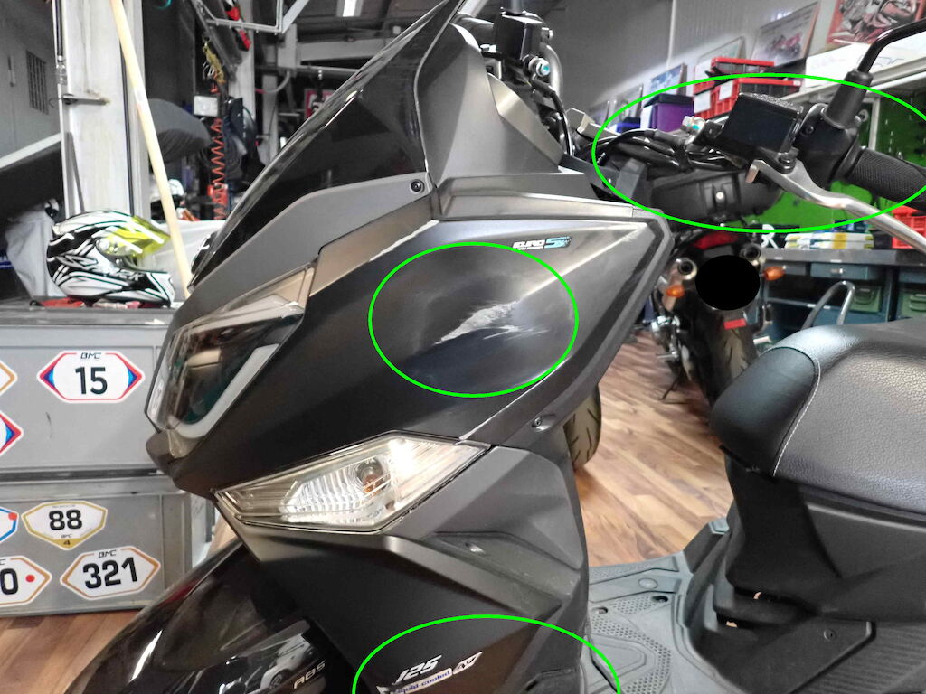 Scooter volé, puis retrouvé.Direction, selle, serrure forcé, cassé.Jeu direction, point dur, braque mal.Cablage arraché de la serrure pour démarrer.Le moteur démarre selon réparateur