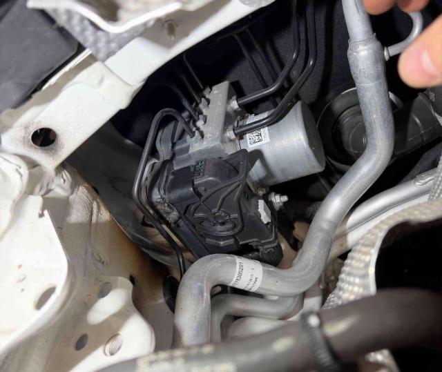 Fahrzeughalter hatte Bremsen gewechselt. Kurzschluss/Brand beim ESP Hydraulikaggregat. Bremsklötze hinten fehlen. Eventuell Transportschaden, da nicht klar ist ob das Fahrzeug so angeliefert wurde.