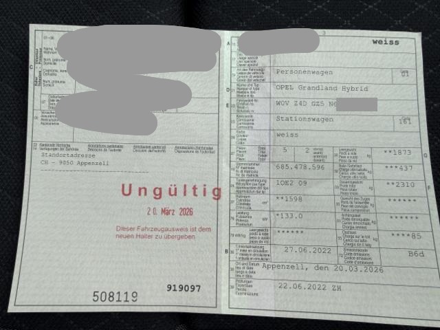 Fahrzeugdokumente vorhanden.