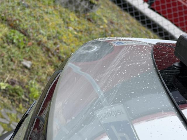 Beide Stossstangen Lackschäden vorhanden. Mehrere Steinschläge ohne Risse auf der Windschutzscheibe vorhanden. Der Kotflügel vorne rechts Lackschaden vorhanden, Der rechte Aussenspiegel Lackschaden vorhanden. Die vordere rechte Felge beschädigt. Die rechte Seitenwand Kratzer vorhanden. Die Heckklappe Dellen vorhanden. Die linke hintere Felge beschädigt. Die linke vordere Türkante beschädigt. Die vordere linke Türblende beschädigt. Weitere nicht aufgeführte und nicht fotografisch festgehaltene oder verdeckte Schäden sind möglich!