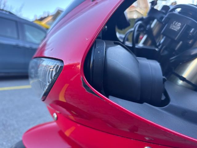 Linke Seite beschädigt. Ist auf die linke Seite gefallen. Verschalung oben links verkratzt. Verschalung unten links verkratzt. Verschalung unten links gebrochen. Verschalung hinten links verkratzt.