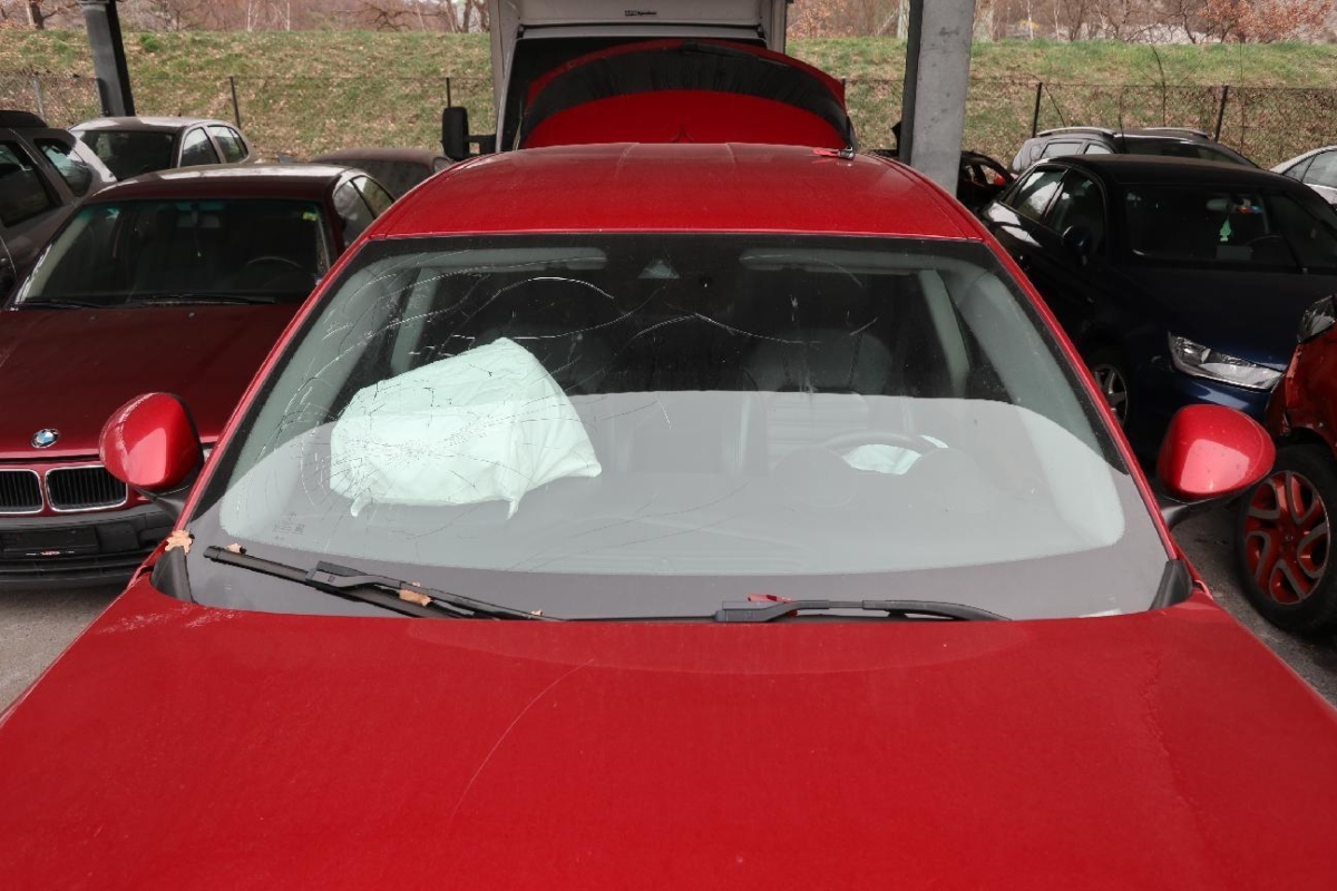 Airbag ausgelöst, Front, Frontscheibe, Getriebe, Gurtstraffer ausgelöst, Interieur, Kabelstrang, Kotflügel links, Kotflügel rechts, Längsträger vorne links, Längsträger vorne rechts, Motor, Radhaus vorne links, Radhaus vorne rechts, Türe vorne links, Vorderachse
