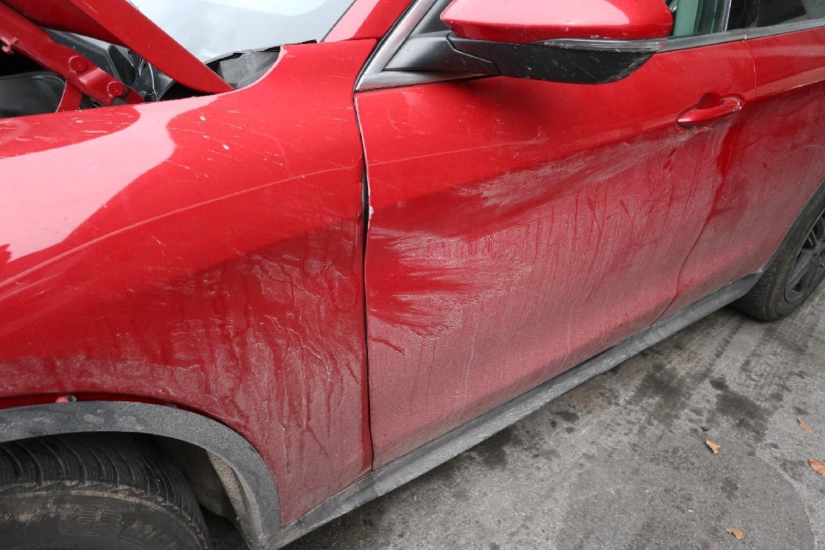 Das Fahrzeug hat rundum kleine Dellen, Beulen und Lackschäden, Kotflügel rechts, Motor und Getriebe mit Risiko, konnten nicht geprüft werden, Stosstange vorne, Türe vorne rechts