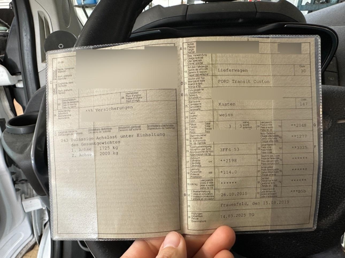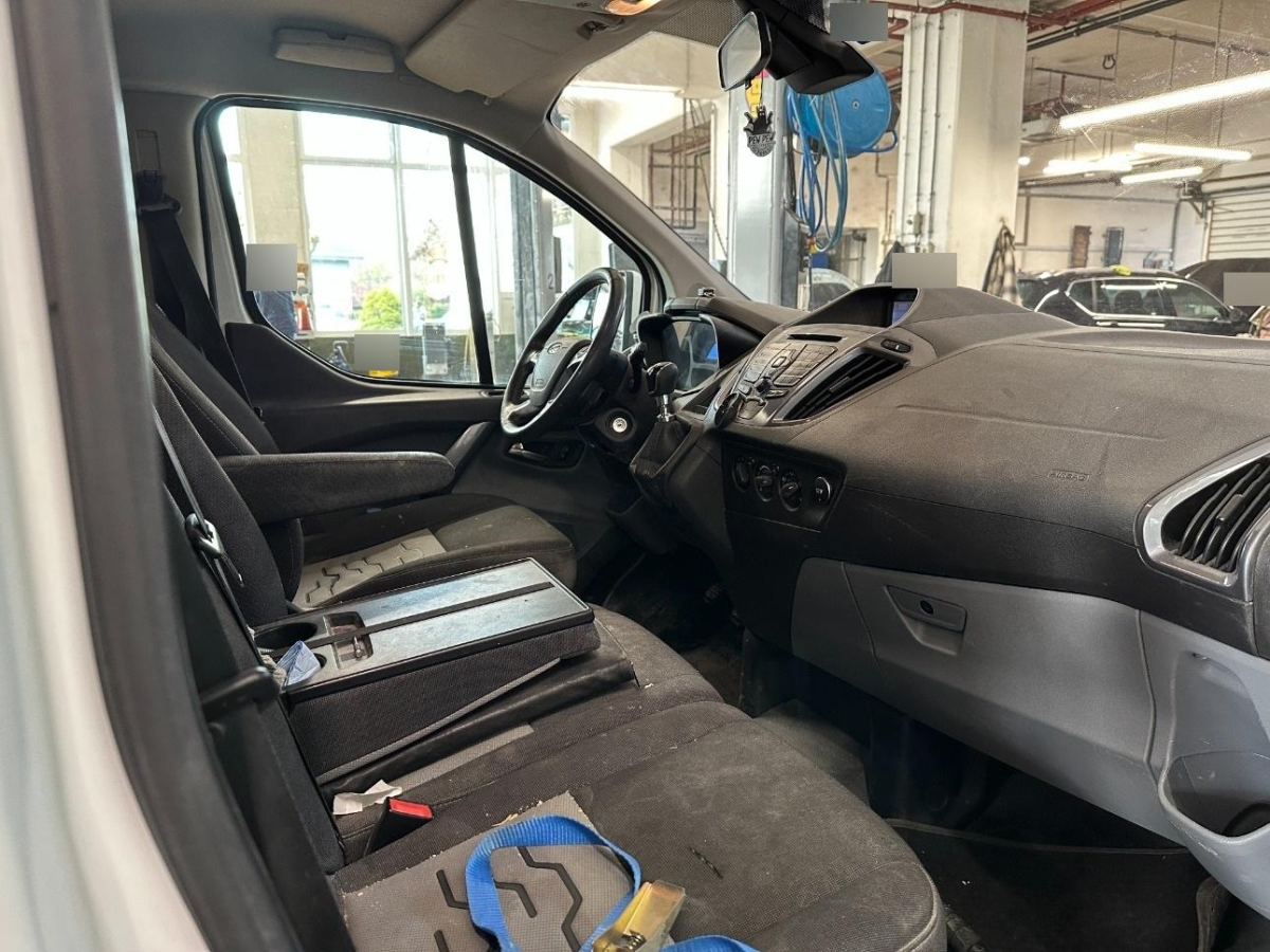 Polster: Stoff-Ausstattung, Lenkrad längs- und höhenverstellbar, Abblendlichtausschaltverzögerung 'Follow me home', Assist: Park Distance Control vorne und hinten, Beide Make up-Spiegel beleuchtet, Innenlicht-Abschaltverzögerung, Pollenfilter (Staubfilter), Befestigungsösen im Laderaum, Digital Uhr, Wegfahrsperre elektronisch, Assist: Tempomat mit Geschwindigkeitsbegrenzer, Licht: Licht- und Regensensor, Wärmeschutzverglasung, Brillenfach, Getriebe: 6-Gang-Getriebe, Licht: Abbiegelicht, Durchladeklappe, Servolenkung, Lackierung: Uni-Lackierung, Sitze: Kreuzstütze für Fahrersitz verstellbar, Gurtstraffer vorne, Airbag: Airbag Fahrer und Beifahrer, Partikelfilter und Oxydationskatalysator, Blinker in Aussenspiegel, Sitze: Armlehne für Fahrersitz, Reifenreparatur-Set (Tire Fit), Versiegelter Laderaumboden, Sitze: Beifahrer Doppelsitzbank, Laderaumtrennwand ohne Fenster, Fahrersitz 4-fach manuell verstellbar, Überrollschutzsystem, Innenspiegel abblendbar, Radio/CD mit Ford SYNC, USB, Aux-In, Bluetooth, Lenkradbedienung, 3,5' Dis- play und 4 Lautsprecher, Aussenspiegel rechts und links beheizt, elektrisch verstell- / und einklappbar, Elektronisches Stabilitäts-Programm (ESP), Antiblockiersystem (ABS), Laderaumbeleuchtung, Ambientebeleuchtung, Zentralverriegelung mit Fernbedienung, Assist: Berganfahrhilfe, Drehzahlmesser, Bordcomputer, Räder: 4 Leichtmetallfelgen 7 x 16J mit Pneu 255/70 R 16, Ablagefach im Dachbereich, Bottleholder, Stossstangen und Seitenzierleisten in Wagenfarbe, Kunststoffboden im Fahrgastraum, Kotschutzlappen vorne und hinten, Laderaum-Schutzpaket, Licht: Tagfahrlicht, Assist: Notbremsassistent, Licht: Nebelscheinwerfer, Frontscheibenheizung, 2. Batterie, Verkleidung des Laderaums, Türen: Schiebetüre rechts, Elektrische Fensterheber vorne, Cupholder vorne, Abschliessbares Handschuhfach, Kopfstützen vorne höhenverstellbar, Räder: Reserverad, Staufach unter den Vordersitzen, Flügeltüren hinten 180°, verblecht, Sensor für Scheibenwischwasser, Klima: Klimaanlage, Elektronische Traktionskontrolle (ASR/TCS), 12-V Steckdosen im Armaturenbrett (2x), Sitze: Vordersitze heizbar, Scheibenwischer vorne mit Intervall, Media: Radiovorbereitung, Antenne und Entstörung, Fahrersitz höhenverstellbar, Lenkrad und Schalthebelgriff in Leder