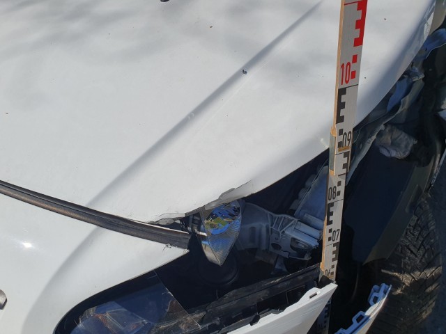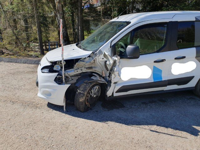 Front links eingedrückt. Frontblech/Maskenblech eingedrückt. Radhaus vorne links eingedrückt / gestaucht. Längsträger vorne links gestaucht.