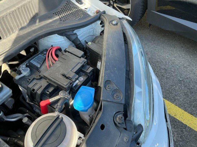 Stossstange, Gitter, Kühlergrill, Motorhaube, Kotflügel, Scheinwerfer, Halterungen, Führungen, Schlossträger, Querträger, Kühler, Verflüssiger, Lüfter und Saugrohr beschädigt. Motorgefahr! Leerlaufgeräusch durch gebrochenes Saugrohr!