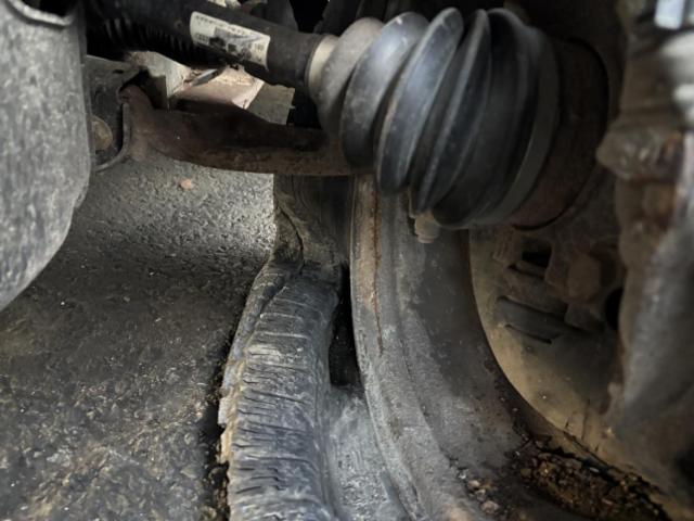 Vorderachse ist beschädigt. Aufhängungsteile vorne links beschädigt. Risiko Lenkung.