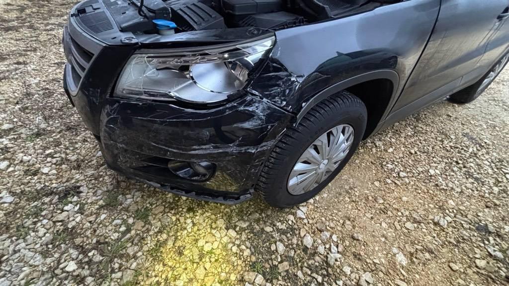 Diverse Gebrauchspuren, Diverse Gebrauchspuren, Front, Front links, Frontblech, Kabelstrang, Kotflügel links, Motorhaube, Rad vorne links, Radhaus vorne links, Scheinwerfer links, Scheinwerfer rechts, Schlossträger, Seite links, Stosstange vorne, Türe vorne links