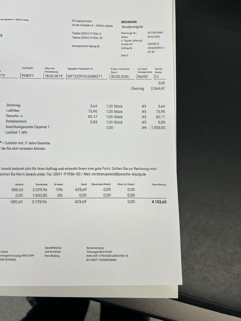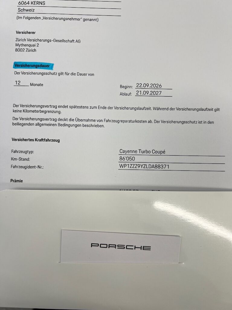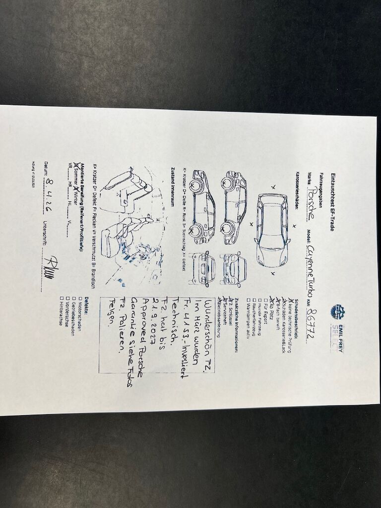 Siehe Fotos : NEUWERTIG ! kleine Steinschläge Motorhaube FZ Polieren. Im März 2026 wurden CHF 4153.- Investiert Technisch, FZ hat APPROVED Porsche Garantie bis 21.09.2027 Felgen, leichte Krätzer Polieren. Motor Getriebe Vorderachse Hinterachse Airbags ausgelöst: 0 unbekannt ( Abfallcode 16.01.04ak )