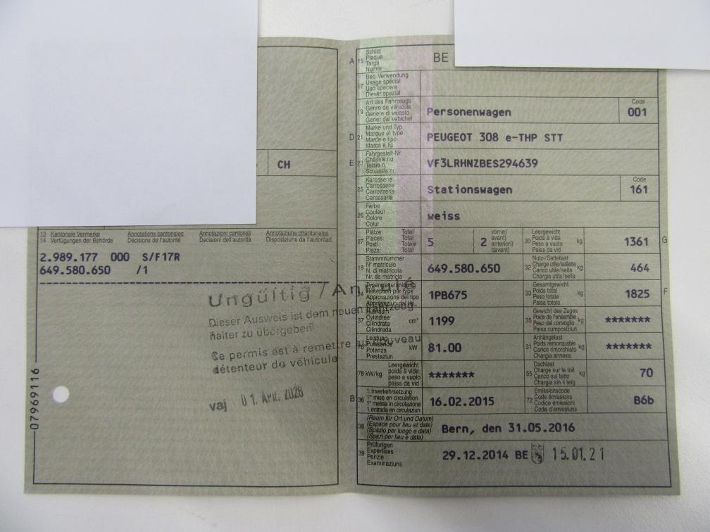 Es wurde ein Eintauschtest durchgeführt. Nachfolgend die Mängel / die zu erledigende Arbeiten: - Service & MFK sind fällig - Bremsen VA & HA zu ers. - Alle Wischerblätter zu ers. - Rückleuchte rechts aussen zu ers. (siehe Foto) - Getriebe ölig (ist zu waschen) - > siehe Foto - Div. Schäden an Carrosserie (siehe Fotos) - Innenraum ist sauber und gepflegt - Es sind 8 komplett-Räder vorhanden -> Beide Sätze mit Winterreifen -> 4x Winterreifen sind zu ers. (195/65 R15)