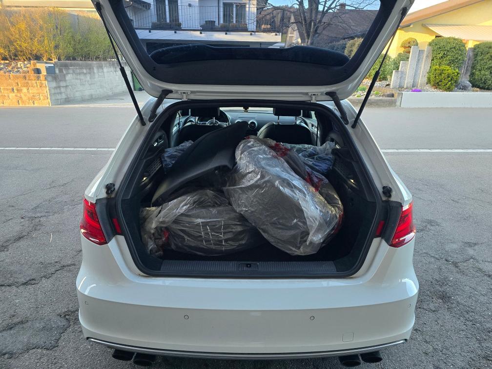 Gepflegter Audi S3 mit Top Ausstattung!! 8 Fach bereift mit Original Felgen und Tomason 19 Zoll im Sommer Felgen! (eingetragen) Spezielle Auspuffanlage mit Gutachten. Fahrzeug ist Innen wie Aussen sehr gepflegt und weist diverse normale Gebrauchsspuren auf. Keine Mechanische oder Technische Prüfung! Fährt und funktioniert jedoch einwandfrei!! Evt wurde mal im Auto Geraucht man riecht jedoch nichts. Verkauf im Kundenauftrag ab Platz