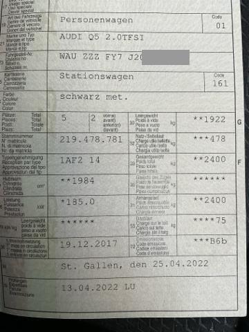 Sitzheizung für Vordersitze Mittelarmlehne vorne Tempostat Aussenspiegel elektrisch verstellbar/ heizbar und anklappbar Airbag Fahrer und Beifahrerseite Seitenairbag Fahrer und Beifahrerseite ESP/ ASR/ EDS/ ABS mit EBV Sportsitze vorne Radschrauben mit Diebstahlsicherung Dekoreinlagen in Aluminium Tagesfahrlichtschaltung Aussenspiegel in Wagenfarbe Servolenkung Bremsassistent EBA Netztrennwand Automatisch abblendbarer Innenspiegel Isofix Kindersitzverankerung/ Deakt. Beifahrerairbag Radioempfang digital DAB Leichtmetallräder 18" 5-Arm Tirefit Pack Glanz Kindersitz-Vorbereitung Isofix hinten Einstiegsleisten Aluminium Reifendruck-Kontrollanzeige Audi drive select (Fahrzeugcharakteristik) Gepäckraumklappe elektrisch öffnend und schliessend Bluetooth Schnittstelle Stop + Start System Keine Gewähr auf die Angaben der Serienausstattungen Komfort Klimaautomatik Dynamikfahrwerk MMI Radio plus Audi connect Notruf & Service