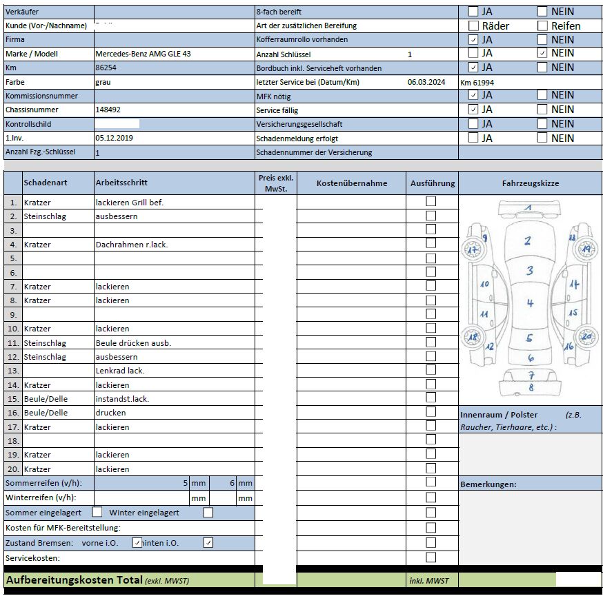 Keine Gewähr auf die Angaben der Sonder- und Serienausstattung / keine mechanische Prüfung. Fahrzeug wurde unzerlegt expertisiert / keine Haftung für allfällige, nach Demontage bekanntwerdenden Mängel. Fahrzeugbereifung und Ausstattung gemäss Fotos / Fahrzeugkauf auf eigenes Risiko ab Platz ohne Nachwährschaft.- Div. Kratzer und Dellen- Zerkratzter Dachrahmen- Kratzer an den Felgen