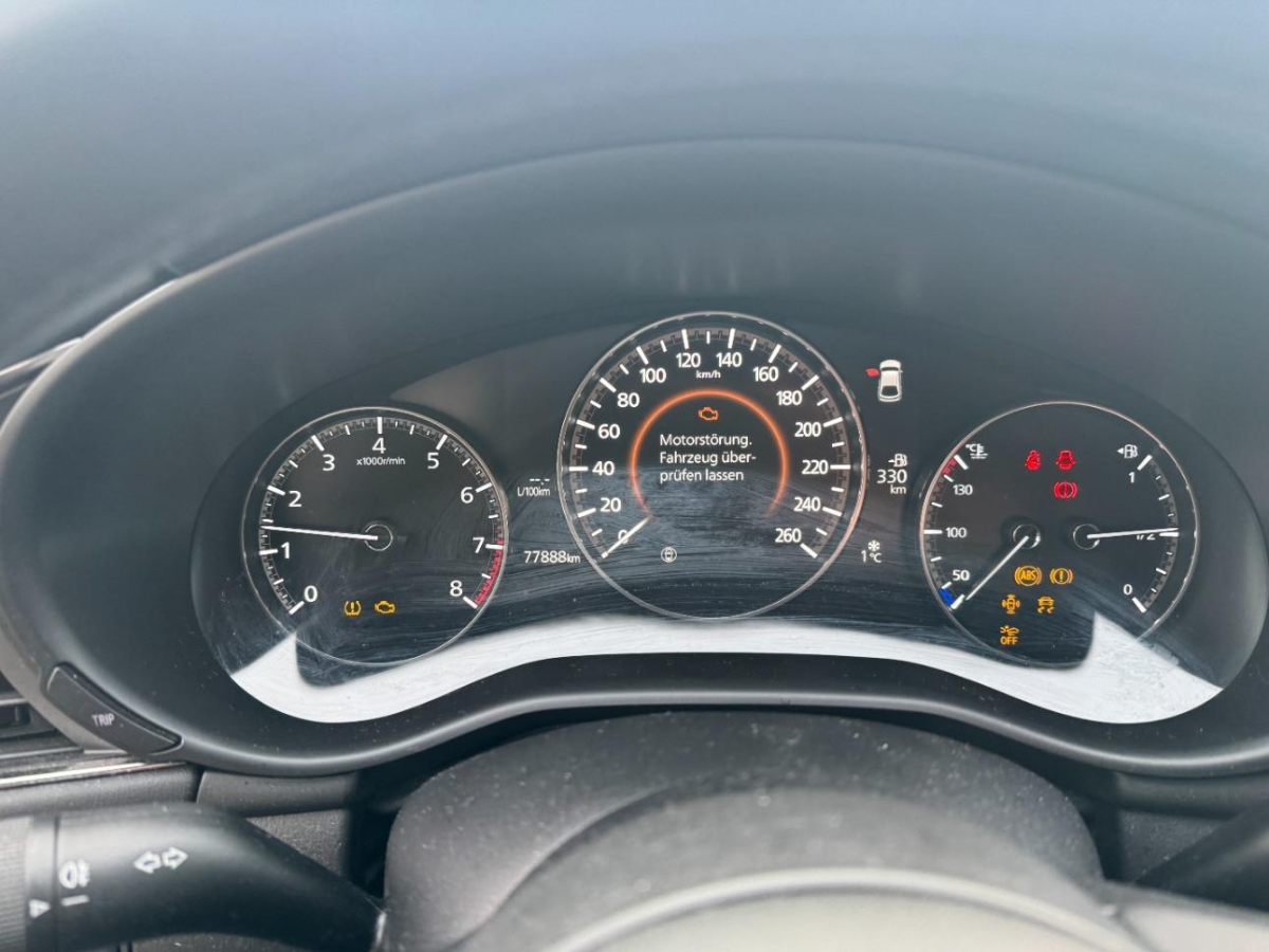Licht: Drittes Bremslicht, Getönte Scheiben Privacy, Licht: Licht- und Regensensor, Assist: Berganfahrhilfe, Lenkrad und Schalthebelgriff in Leder, Media: Touchscreen, Assist: 360° Kamera inklusive Rückfahrkamera, Adaptiver Tempomat ACC, E-Call, Dachspoiler, Aussenspiegel in Wagenfarbe, Stopp-/Start-System, Knie-Airbag für Fahrer, Media: Head-Up Display, Licht: LED-Tagfahrlicht, Licht: Coming-home-Funktion, Pre-Crash-Sicherheitsystem, Licht: Automatisches Fernlicht, Scheibenwischer-Enteiser, Airbag: Airbag Fahrer und Beifahrer, Assist: Querverkehrsassistent hinten, Airbag: Kopfairbags vorne und hinten, Getriebe: 6-Gang-Getriebe, Assist: Spurwechselassistent, Digital Uhr, Innenspiegel automatisch abblendbar, Licht: Matrix LED Scheinwerfer, Wegfahrsperre elektronisch, Assist: Einparkhilfe vorne, Sitze: Vordersitze heizbar, Innenleuchten LED, 3-Punkt-Sicherheitsgurte auf allen Plätzen, Räder: 4 Leichtmetallfelgen 18J mit Pneu, Auto-Hold-Funktion, Heckscheibenheizung, Drehzahlmesser, Gurtstraffer vorne, Polster: Stoff-Ausstattung, Klima: 2-Zonen-Klimaautomatik, Elektronische Parkbremse, Spurhalteassistent Lane Assist und Totwinkelassistent Blind Spot Detection, Wassertemperaturanzeige, Media: Compatible mit Apple CarPlay und Android Auto, Elektrische Fensterheber vorne + hinten, Lackierung: Uni-Lackierung, Bremsenergie-Rückgewinnung, Licht: LED Heckleuchten, Sitze: Beifahrersitz höhenverstellbar, Media: 12 Lautsprecher, Sitze: Rücksitzlehne geteilt abklappbar, Assist: Rückfahr-Notbremsassistent, Steckdose 12V, Assist: Torque Vectoring, Assist: Verkehrszeichenerkennung TSR, (Traffic Sign Recognition), erfordert Navigationssystem, Rahmloser Innenrückspiegel, Assist: ABS, EBD elektronische Bremskraftverteilung, Lenkrad: Multifunktionslenkrad, Aussenspiegel elektrisch einklappbar, Front Cross Traffic Alert, Sitze: Fahrersitz höhenverstellbar, Katalysator geregelt, Lenkrad: Lenkrad beheizbar, Assist: ATTENTION ASSIST (Aufmerksamkeitsassistent), Diebstahlwarnanlage, Media: USB-Anschluss, Aussenspiegel rechts und links beheizt, Stauassistent, Airbag: Seitenairbags vorne, MZD Connect mit 8,8''-FTF-Farbdisplay und Multi Commander HMI auf der Mittelkonsole, Licht: Nebelschlussleuchte, Servolenkung, Keyless Entry, Media: Bose Premium Audio System, Assist: Traktionskontrolle (TCS-Traction Conrol System), Dachhimmel schwarz, Klima: Pollenfilter (Staubfilter), Sitze: ISOFIX Kindersitzvorrichtung, Media: Bluetooth-Schnittstelle mit Freisprecheinrichtung, Assist: Dynamische Stabilitätskontrolle (DSC), Zentralverriegelung mit Fernbedienung, Park Distance Control hinten, Getönte Scheiben, Start-/Stop-Knopf, Assist: City-Notbremsassistent SCBS mit Fussgängererkennung, Media: Digitaler Radioempfang (DAB/DAB+), Media: Navigationssystem, Rear Cross Traffic Alert (Rückwärts-Auspark-Assistent), Aussentemperaturanzeige, Höhenverstellbare Gurten vorne, Tageskilometerzähler