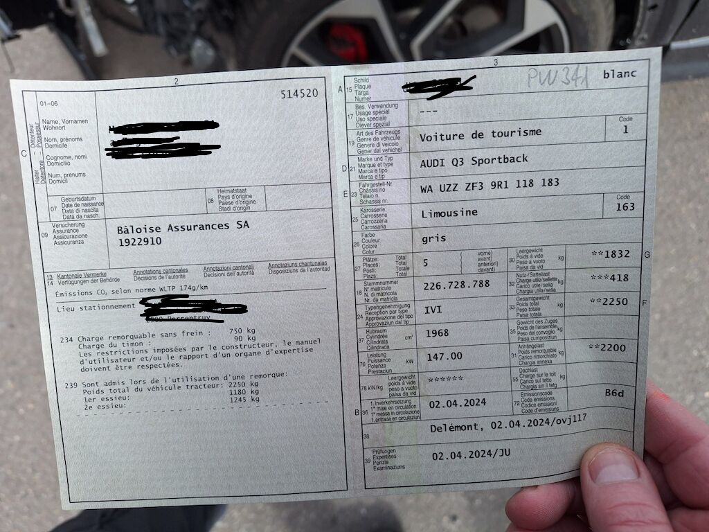 Équipement de sériePack brillante, Système stop + start, Rétroviseurs ext. dégivrants/ réglables électrique, Lumière et capteur de pluie, Capot de coffre àouverture et fermeture électriques, Enjoliveur de seuil en aluminium, Roues en alliage léger 18" 5rayonsdesignV, Frein de parc électriquemécanique, Direction dynamique (asservie à vitesse), Suspension sportive, Filtre à particules Diesel DPF, Audi drive select (véhiculecaractéristique), Airbags conducteur et passager, Airbags latéraux conducteur et passager, Airbag latéral de tête SIDEGUARD, Audi SideAssist (Assistant de changement de voie), Audi Lane Assist (Alerte de changement de voie), Audi pre sense basic, Audi pre sense front,Prééquipementsiège pour d'enfant Isofix/ AR, Isofix ancrage pour siège enfant siège passager, Contrôle de pression des pneus, ESP/ASR/ EDS/ ABS incl. EBV, Audi hill hold assist (Assistant démarrage en côte), Climatisation manuel, Application décorative en micrométal,Volant cuir multifonctions 3branches,Ciel argent/ tissu, Accoudoir central avant, MMI Radio plus, Récepteur de radio digital DAB, Bluetoothinterface, Aucune garantie sur l'exactitude de l'équipement de sérieÉquipement optionnel et autres équipements Prix neufPack SLineIntérieur 2'340.PackOptique noir/ étendu 980.PackAssistance 420.PackDynamique 1'370.Cléde confort 540.Vitresteintées 520.Lavephares350.Dispositifd'attelage 1'160.Laquageplein 330.Peintureeffet nacré 920.Rouesen alliage léger 20" 5V rayons 3'000.Suspensionréglable 1'280.Ass.de conduite adapt.+ assist. urgence+ ass. bouchons 540.Camérade recul 540.Assistancede stationnement 520.Matrixphares à LED 2'070.Assistantde démarrage 110.Audihill hold assist (Assistant descente en côte) 130.ConfortClimatisation automatique 770.OptiqueAlu pour intérieur 120.Volantcuir multifonctions 3branchesplus 200.Cielnoir/ tissu 310.Siègessport avant 410.Siègesavant chauffants 450.Banquettearrière plus 160.SiègesAV électriquement réglable/ Siège cond. avec mémoire 1'140.Appuisreinsréglables électriquement pour sièges avant 350.Rétroviseurintérieur antiéblouissement230.Audivirtual cockpit plus 550.SonosPremium Sound System 1'030.InterfaceUSB 100.Audismartphone interface 700.MMINavigation plus incl. reconnaissance signalisation 2'530.Total26'170.-