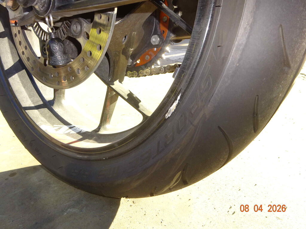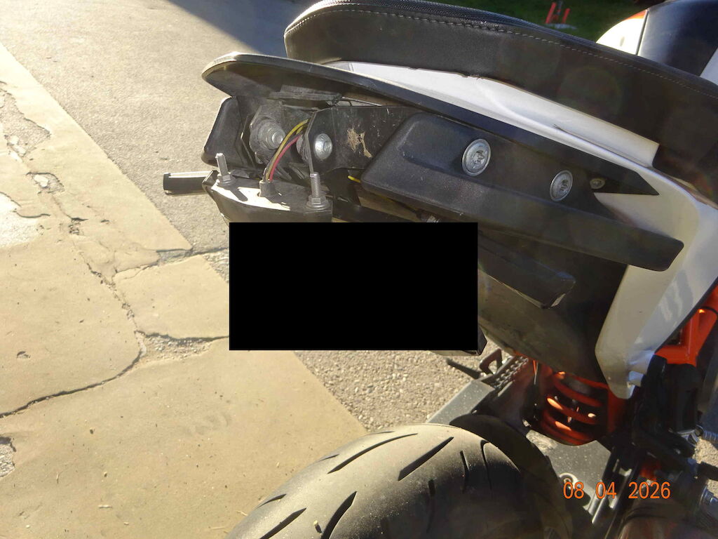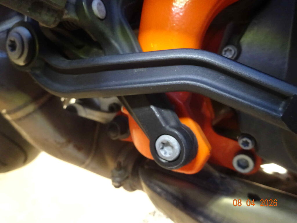 rechte Seite, Auspuff, Schalthebel, Felge hinten, Hinterradschwinge, Spiegel rechts, Heck