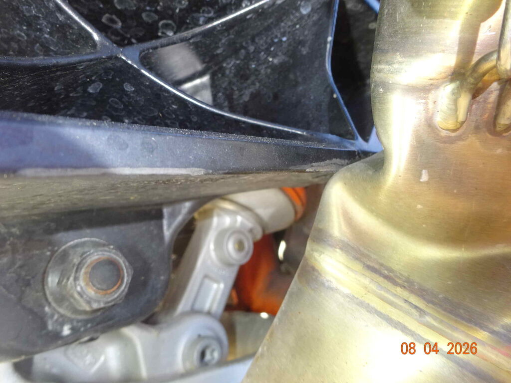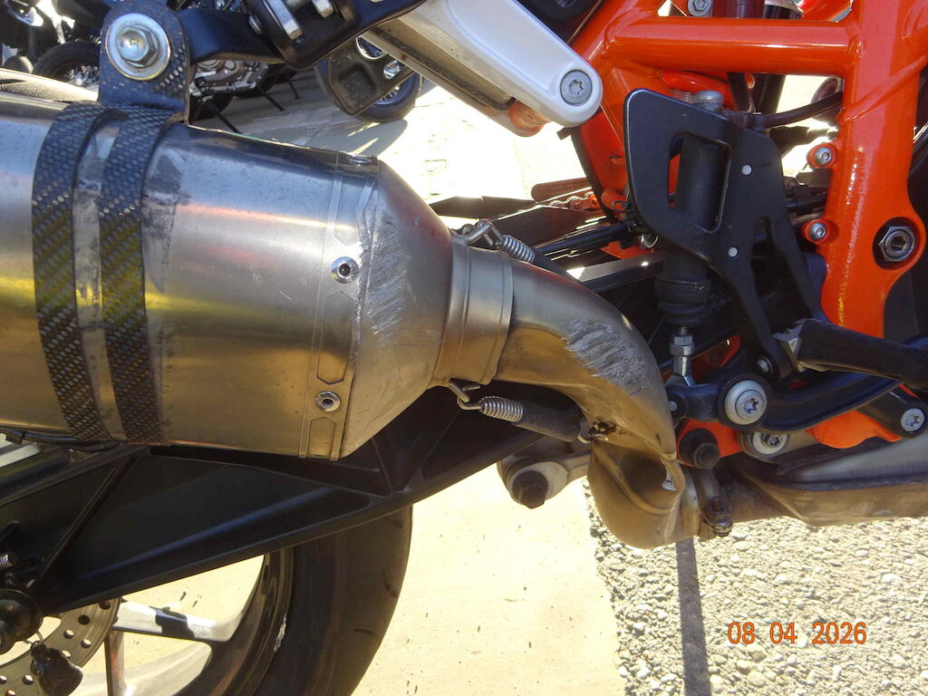 rechte Seite, Auspuff, Schalthebel, Felge hinten, Hinterradschwinge Motor Getriebe Vorderachse Hinterachse Airbags ausgelöst: 0 unbekannt ( Abfallcode 16.01.04ak )