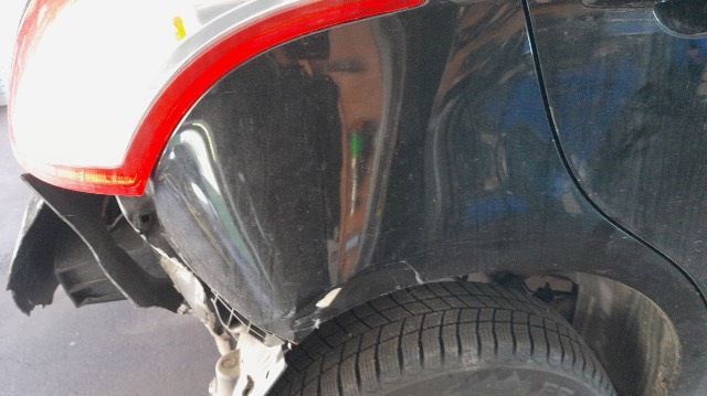Heck: Heckschürze, Heckdeckel, Heckblech, Seitenwand rechts und Auspuffanlage deformiert/beschädigt/verbeult/verkratzt. / Vorbestandene Schäden: Vorne rechts: Frontschürze. Seite rechts: Aussenspiegelschale. Seite links: Aussenspiegelschale