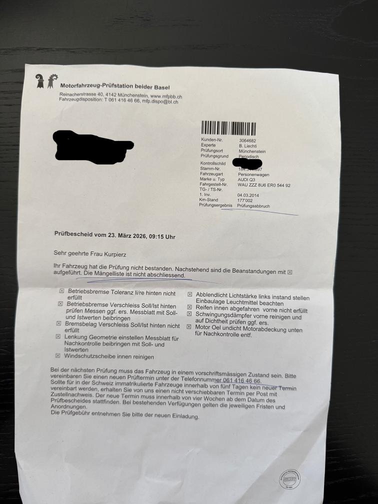 MFK nicht bestanden Mängelliste siehe Fotos. Servicegepflegt. 8-fach bereift. Am Fahrzeug wurde kein Werkstatttest gemacht (Für sichtbare oder nicht sichtbare Mängel wird nicht gehaftet). Wir testen & kontrollieren nicht alle Funktionen vom Fahrzeug. Das Risiko liegt somit vollumfänglich beim Käufer. Nachdem der Höchstbietende den Zuschlag erhalten hat, gibt es keine Nachverhandlung, auch wenn nicht deklarierte Mängel zum Vorschein kommen sollten. Ab Platz ohne Garantie, Wandelung und Minderung werden wegbedungen. Abholung nach Zuschlag innert 3 Tagen.