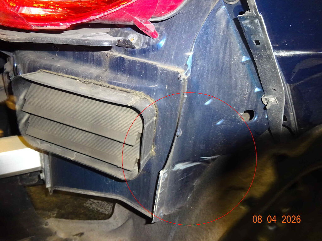 Stossstange hinten gerissen, Seitenwand rechts gestaucht und aufgerissen, Türfalz gerissen, Türe hinten rechts gestaucht, Felge schlag abbekommen. Reifen gerissen. Motor Getriebe Vorderachse Hinterachse Airbags ausgelöst: 0 unbekannt ( Abfallcode 16.01.04ak )