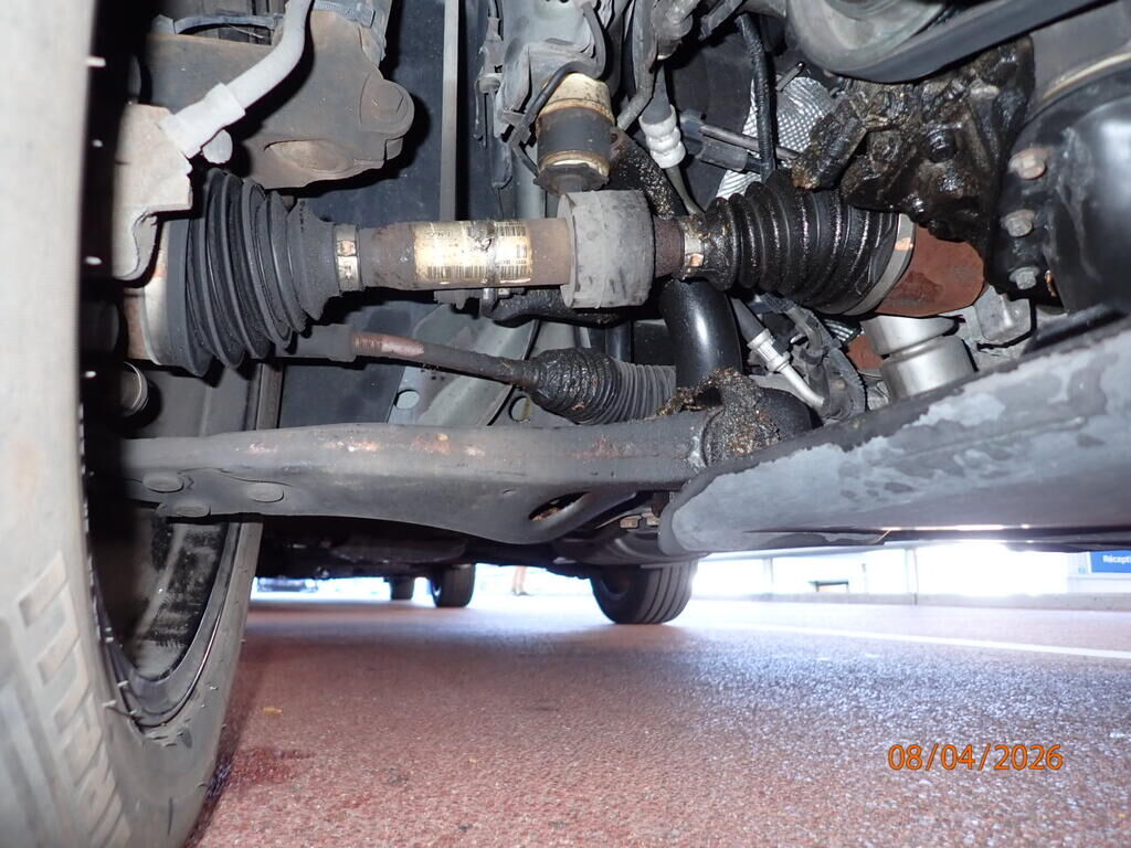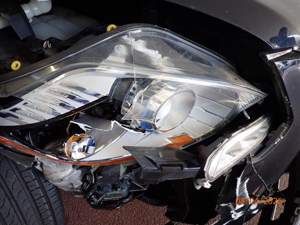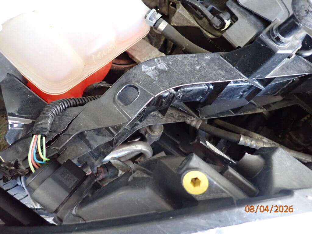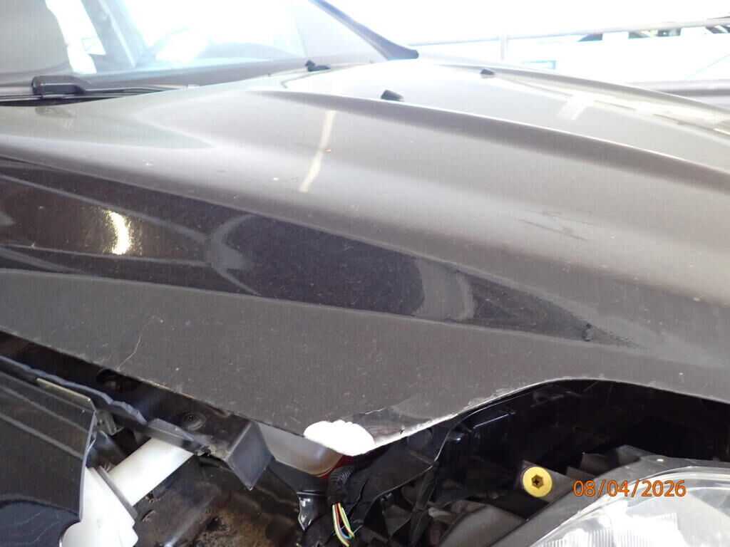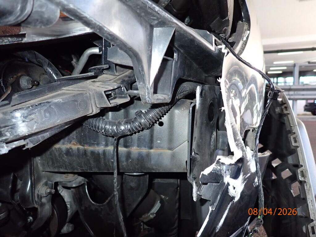 Capot, aile avant cassée, phare cassé, pare-chocs avant, renfort, panneau frontal, joue d'aile pliée, roue avant droite, trapèze plié, barre de direction, moyeu, roulement, amortisseur, pompe de direction, déshydrateur, compresseur de climatisation, airbags déployés Motor Getriebe Vorderachse Hinterachse Airbags ausgelöst: 2 unbekannt ( Abfallcode 16.01.04ak )