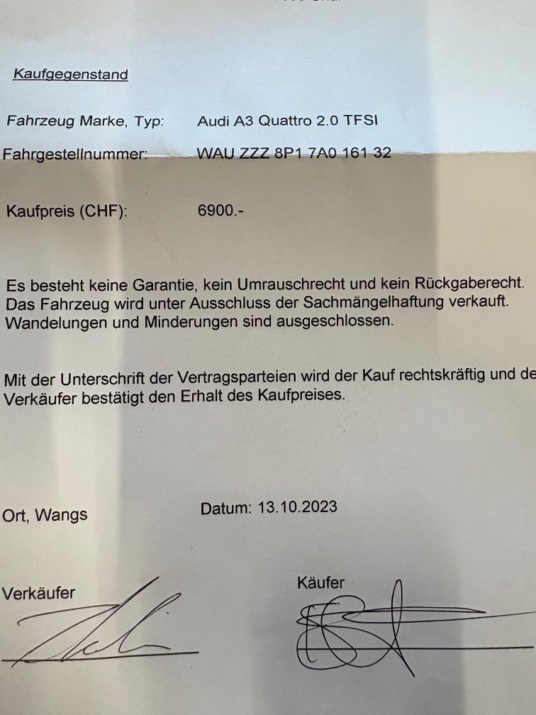 Fahrzeuge hat diverse Gebrauchsspuren und Flugrost siehe Fotos. Steinschlag Frontscheibe. Handschuhfach Deckel fehlt. Hutablage fehlt. Eine Stoplampe und Ablendlicht defekt: muss je eine Birne ausgetauscht werden. Zahnriemen wurde erneuert: siehe Service Bericht, Fotos. Sommerreifen demnächst erneuern, ca 25% Auspuffrohr gebrochen siehe Fotos. Antriebswellen Manschette vorne rechts aussen gerissen. Antriebswellen machen keine Geräusche. Kein Oelverlust, siehe Fotos Verkauf ohne Garantie, Wandelungen und Minderungen sind ausgeschlossen