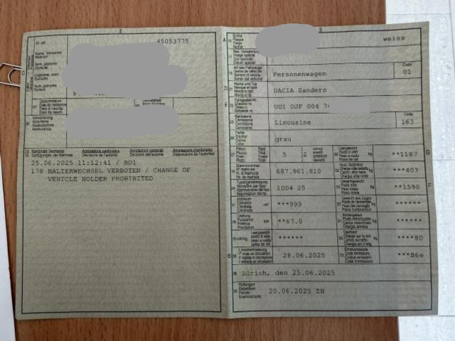 Fahrzeugdokumente vorhanden.