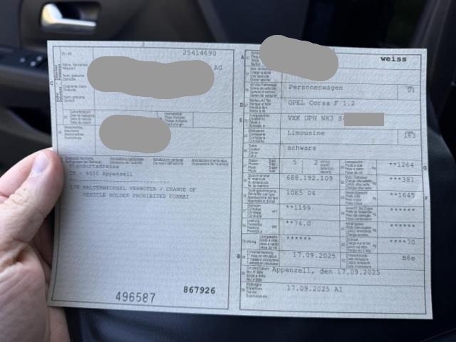 ACHTUNG: ZUSÄTZLICH ZUM RESTWERTGEBOT WIRD EINE HANDLINGS-GEBÜHR VON CHF 500.00 ERHOBEN! Der Kilometerstand wurde abgelesen. Gebrauchsspuren und kleinere Vorschäden sind möglich. Keine weitere Bereifung vorhanden. Vor Ort waren: 1 Schlüssel und Ausweis vorhanden. Motor und Getriebe wurde nicht geprüft. Keine Gewähr auf Serien- und Sonderaustattungen. Weitere nicht aufgeführte und nicht fotografisch festgehaltene oder verdeckte Schäden sind möglich!