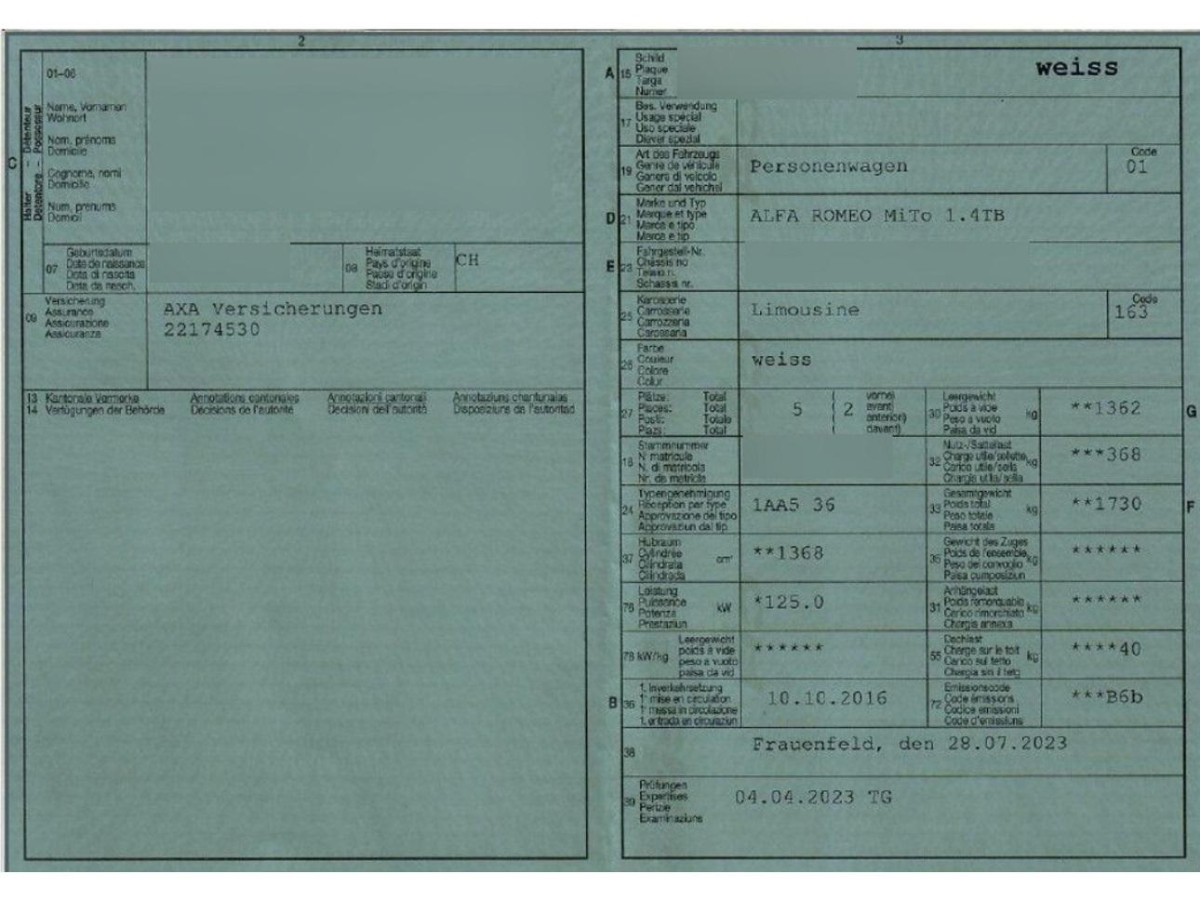 Heckscheibenheizung, Airbag: Window-Kopfairbags, Aussentemperaturanzeige, Pedale und Fuss-Stütze in Aluminium, Lenkrad: Lenksäule mechanisch in Höhe und Länge verstellbar, Licht: Drittes Bremslicht, Berganfahrhilfe (Hill Holder), Alfa D.N.A System, Höhenverstellbare Gurten vorne, Sportlenkrad, Knie-Airbag für Fahrer, Airbag: Seitenairbag für Fahrer und Beifahrer, Einstiegsschienen beleuchtet, Pollenfilter (Staubfilter), Reifenreparatur-Set (Tire Fit), Easy-Entry Lehnenentriegelung, Kopfstützen hinten höhenverstellbar, Antriebsschlupfregelung (ASR), Kartentasche an der Rückenlehne, Vordersitze höhenverstellbar, Bordcomputer, Aussenspiegel rechts und links beheizbar und elektrisch verstellbar, Leichtmetallfelgen 17J VELOCE Titanium, Antiblockiersystem (ABS), 3-Punkt-Sicherheitsgurte auf allen Plätzen, Leseleuchten, Heckscheiben-Wisch-/Waschanlage mit, Sitze: Kopfstützen vorne höhenverstellbar, Cupholder, Katalysator geregelt, Nebelscheinwerfer, Beleuchtetes Handschuhfach, Gurtstraffer vorne, ISOFIX Kindersitzvorrichtung, Reifendruck-Kontrollanzeige, Teppichfussmatten, Airbag: Airbag Beifahrer deaktivierbar, Heckspoiler, Scheibenwaschdüsen beheizt, Abblendlichtausschaltverzögerung 'Follow me home', Kreuzstützen für Vordersitze verstellbar, Airbag: Airbag Fahrer und Beifahrer, Scheibenwischer vorne mit Intervall, Klimatisierungsautomatik, Servolenkung, Tempomat, Aussenspiegel in Chrom, Elektrische Fensterheber vorne, Bremssättel rot lackiert, Lenkrad mit Schaltwippen, Beide Make up-Spiegel beleuchtet, Autoradio mit Touchscreen, Bedienelement am Lenkrad, Bluetooth, Multimediasystem Uconnect (Freisprecheinrichtung, USB, AUX), Start/Stop-Funktion, Wegfahrsperre elektronisch, Tageskilometerzähler, Bremsassistent (BAS), Laderaumbeleuchtung, Bordinstrumente mit weisser Grafik, Licht: Nebelschlussleuchte, Scheinwerfer- und Rücklichter Rahmen in spezial Farben, Gurtkontrolle, Multifunktionsanzeige, Elektronisches Stabilitäts-Programm (ESP), LED Heckleuchten, Sequentielles 6-Gang-Getriebe mit Automatikfunktion