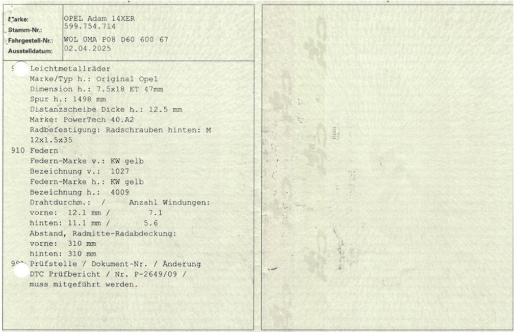 4 Leichtmetallfelgen Twister 18J Pedalerie mit Aluminiumauflage Winter Pack Sitze: Vordersitze heizbar Lenkrad: Lenkradheizung Lackierung: Metallic-Lackierung Ambientebeleuchtung Radio IntelliLink mit 7'' Touchscreen, Bluetooth und USB Park-Pilot + Park Assistent Paket Parklenkassistent 7 Lautsprecher Info-Display Aussenspiegel rechts und links beheizbar und elektrisch verstellbar Assist: Toter-Winkel-Warnsystem Park Distance Control vorne und hinten OPC Line Paket 1 Seitenschweller Front- und Heckschürze Dachspoiler Radio CD 3.0 BT Leichtmetallräder Hurricane, 17J Gurtstraffer mit Gurtkraftbegrenzer vorne Assist: Geschwindigkeitsregler Easy-Entry Gangempfehlung City-Modus Stoff-Ausstattung Marrocana Pedal Release System Auskuppelnde Sicherheitspedale PRS Stopp-/Start-System Ablagen in den Türen Elektrische Fensterheber vorne mit Komfortbetätigung und Einklemmschutz Kopfstützen vorne höhenverstellbar AUX-Anschluss Einstiegsleisten in Aluminium Vordersitze mit Memory Funktion Licht: LED-Tagfahrlicht 12-Volt-Steckdose vorne Sicherheitslenksäule Licht: LED Heckleuchten Türgriffe aussen in Wagenfarbe 3-Punkt-Sicherheitsgurte auf allen Plätzen Gurtkontrolle Elektronische Traktionskontrolle (DSA) 2 Zündschlüssel (1 klappbar) Interieurleisten Befestigungsösen im Laderaum Licht: Adaptives Bremslicht Reifenreparatur-Set mit Kompressor Berganfahrassistent Drehzahlmesser Klima: Pollenfilter (Staubfilter) Bordcomputer Klima: Klimatisierungsautomatik Cupholder hinten Handschuhfach Cupholder vorne Wartungsintervall-Anzeige Seitenaufprall-Schutzsystem Stossstangen in Wagenfarbe Airbag: Seitenairbag für Fahrer und Beifahrer 7 Lautsprecher Sitze: Rücksitzlehne geteilt abklappbar ISOFIX Kindersitzvorrichtung Sitze: Beifahrersitz höhenverstellbar Kopfstützen hinten Sitze: Fahrersitz höhenverstellbar Airbag: Airbag Beifahrer deaktivierbar Mittelkonsole mit Ablagefach Airbag: Window-Kopfairbags Lenkrad: Lenkrad längs- und höhenverstellbar Airbag: Airbag Fahrer und Beifahrer Lederlenkrad Lackierung: Uni-Lackierung Elektronisches Stabilitäts-Programm ESP Servolenkung geschwindigkeitsabhängig Assist: Bremsassistent (BAS) Sportfahrwerk Getriebe: 5-Gang-Getriebe Antiblockiersystem (ABS) Katalysator geregelt Zentralverriegelung mit Fernbedienung Licht: Drittes Bremslicht Scheibenwischer vorne mit Intervall Heckscheibenheizung Licht: Nebelschlussleuchte Getönte Scheiben Wegfahrsperre elektronisch