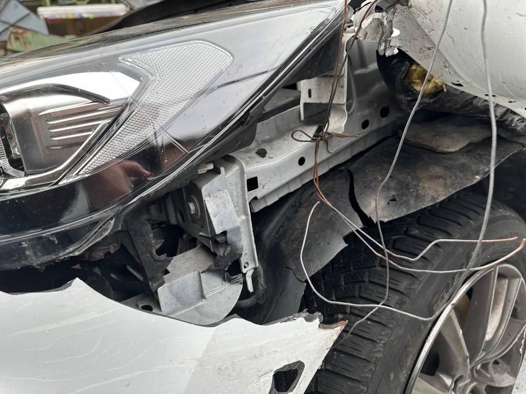 Federbein vorne links, Front links, Frontblech, Gurtstraffer ausgelöst, Heck links, Kotflügel links, Lenkung, Rad vorne links, Radaufhängung vorne links, Radhaus vorne links, Scheinwerfer links, Schweller links, Seite links, Seitenwand links, Stosstange vorne, Türe hinten links, Türe vorne links, Überrollbügel ausgelöst