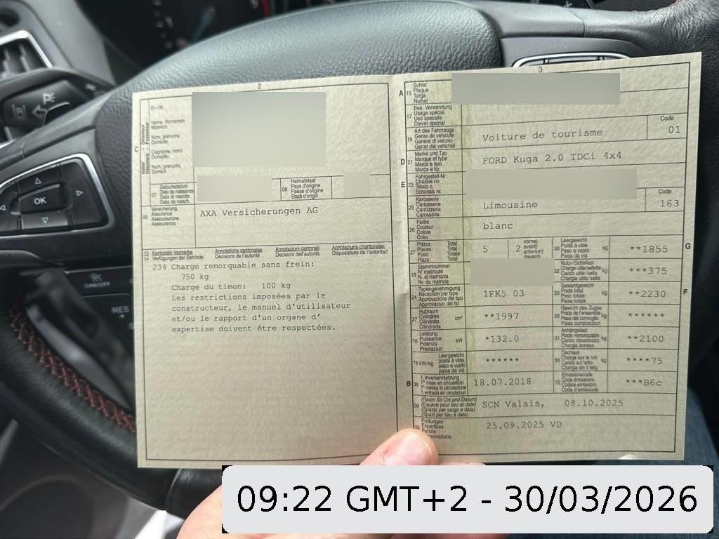 Boîte à 6 vitesses séquentielle avec fonction automatique, Traction intégrale permanente, ABS et TCS, Direction assistée, Système antidémarrage, Rétroviseurs extérieurs droite et gauche chauffables, réglables et rabattables électriquement avec éclairage du sol, Lumière: Phares antibrouillard, Lumière: Feu AR antibrouillard, Lumière: 3ème feu de stop, Essuie-glace AR intermittent avec lave-glace, Essuieglaces AV avec intervalle, Sièges: Siège conducteur réglable en hauteur, Sièges: Dossier AR rabattable en parties, Fixation ISOFIX pour siège enfant, Sièges: Sièges AV de sport, Tissu: Equipement en tissu/cuir, Volant et pommeau du levier de vitesse en cuir, Volant: Volant réglable en hauteur et profondeur, Airbag: Airbag conducteur et passager, Airbag: Airbags rideaux pour la tête, Porte-boissons AV, Portes-cartes aux dossiers de siège, Tous les deux miroirs de courtoisie éclairés, Rétroviseur intérieur réglable jour/nuit automatique, Couverture de compartiment de charge, Prétensionneurs de ceintures AV, Clima: Filtre à pollen (filtre à poussière), Ordinateur de bord, Affichage du contrôle de la pression des pneus, Volant: Commande à distance pour autoradio, Barres de toit en noir, Airbag: Airbags latéraux pour conducteur et passager, Pédales avec inserts en aluminium, Filtre à particules et catalyseur à oxydation, Contrôle de ceinture, Porte-cartes au dossier de siège, Tapis revêtus, Couvertures pour les seuils avant, Airbag: Airbag pour les genoux du conducteur, Ceintures de sécurité à 3 points à toutes les places, Console centrale Premium, Allume-cigares, Système d'information pour conducteur avec écran couleur, Contient le kit carrosserie, Eclairage aux pieds AV, Frein de parc électronique, Sièges: Accoudoir central AR. avec 2 porte-boissons, Sièges avants basculants manuellement, Appuis-têtes arrière réglables en hauteur, Verrouillage central avec télécommande et fermeture globale, Revêtement interne, Pare-chocs, rétroviseurs extérieurs et poignées de portes en couleur de la carrosserie, Lumière: Projecteurs halogènes, Assist: Aide au démarrage en côte pas en combinaision (Hill Launch Assist), Assist: Régulateur de vitesse et limiteur de la vitesse, Fonction de démarrage KeyFree FordPower, Lumière: Détecteur de luminosité et de pluie, Calandre avec éléments de design, Roues: Set de réparation pour les pneus (Tire Fit), Sièges: Appuis-têtes avant réglables en hauteur, Casier au sol arrière, Prise de courant 12V, Lève-vitres électriques AV et AR avec commande confort et protection contre le coincement, Sièges: Soutien lombaire réglage des sièges conducteur et passager,, Clima: Climatisation à régulation automatique 2 zones, Vitrage athermique, Lumière: L'éclairage diurne à LED, Mécanisme d'échappement avec 2 canalisations finales, Système stop/start, Volant sport en cuir avec command radio, Roues à 5x2 branches en alliage léger 18J, Easy Fuel, Assist: Park-Assistent (fonction parking, capteurs de distance de stationnement avant et arrière), Système navigation, Radio/CD/MP3, DAB+, 6 HP, télecommande, Bluetooth, assist. d'urgence, SYNC 3, 2xUSB, TMC, AppLink/ Apple CarPlay/ Android Auto