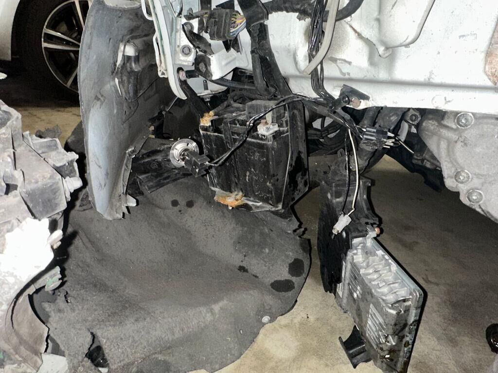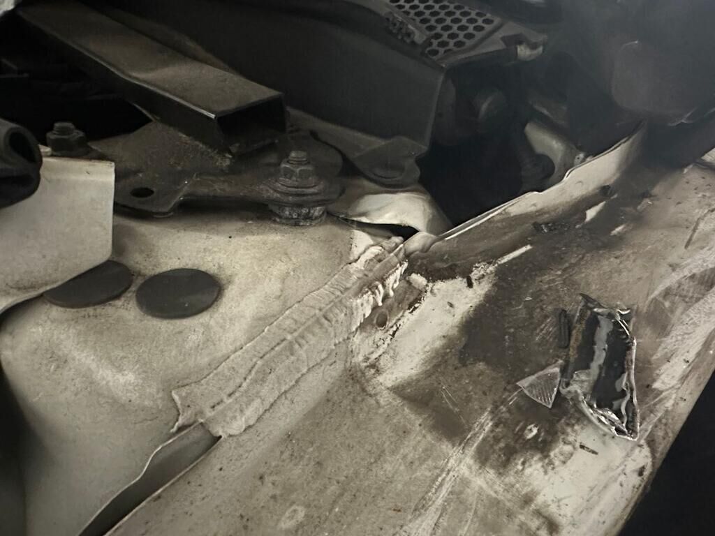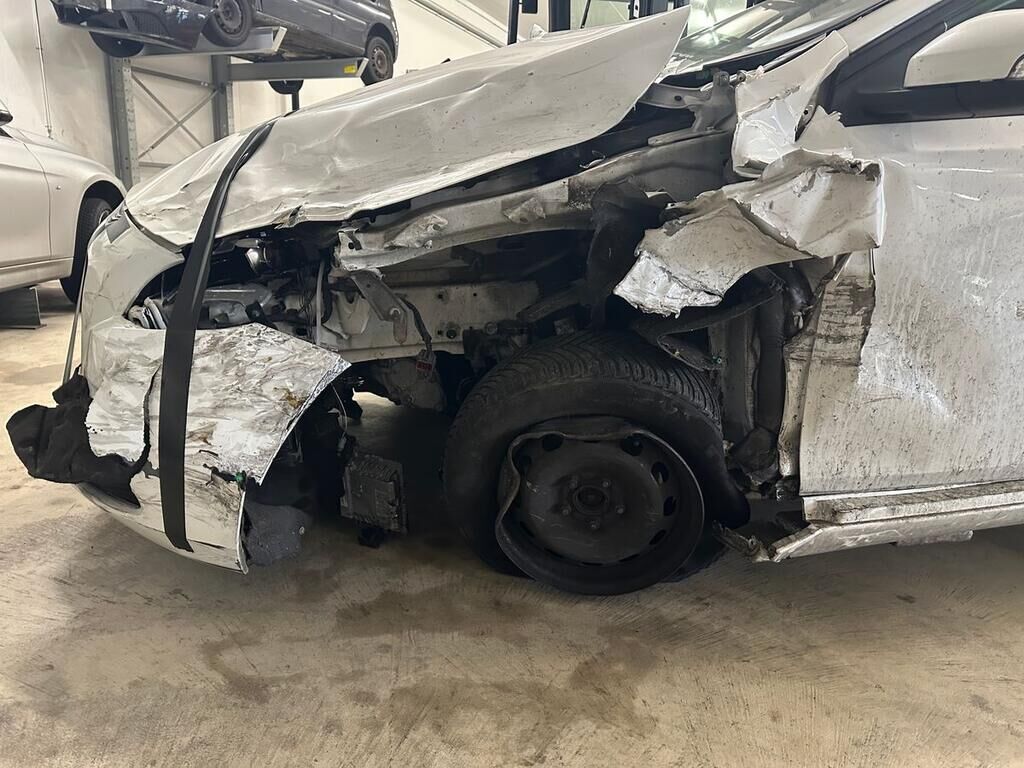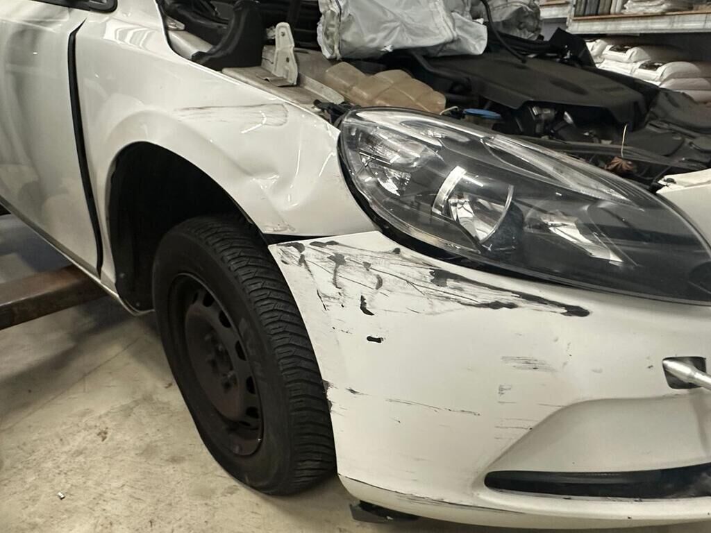 Frontkollision mit Beschädigung des Stossfängers, Motorhaube, beide Scheinwerfer, Kotflügel links, Rad, Radaufhängung, Fahrertüre, Türe hinten links, Seitenwand, Schweller links. Fahrzeugfront nach rechts verschoben. Rückhaltesysteme ausgelöst. Motor Getriebe Vorderachse Hinterachse Airbags ausgelöst: 6 unbekannt ( Abfallcode 16.01.04ak )