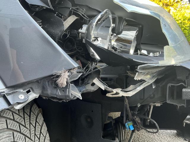Front rechts eingedrückt. Frontblech/Maskenblech eingedrückt. Radhaus vorne rechts eingedrückt / gestaucht. Fahrzeugvorbau verschoben.
