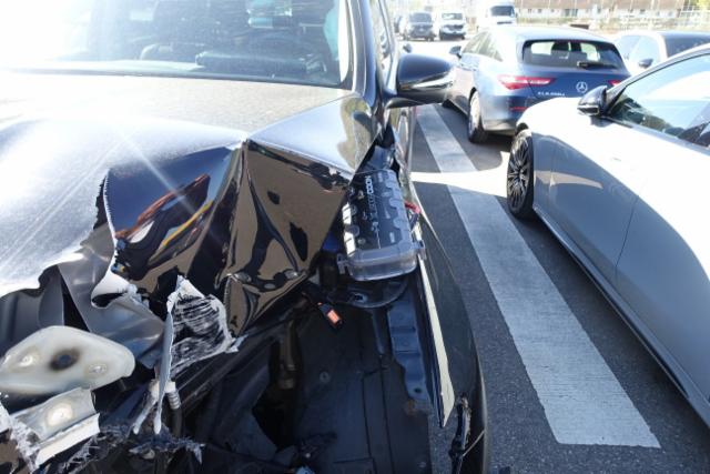 Knieairbag ausgelöst. Keine Fehleranzeigen, sowie kein Flüssigkeitsverlust bei der Besichtigung sichtbar. Motorhaube konnte nicht geöffnet werden.