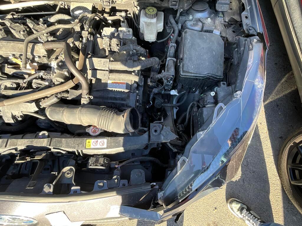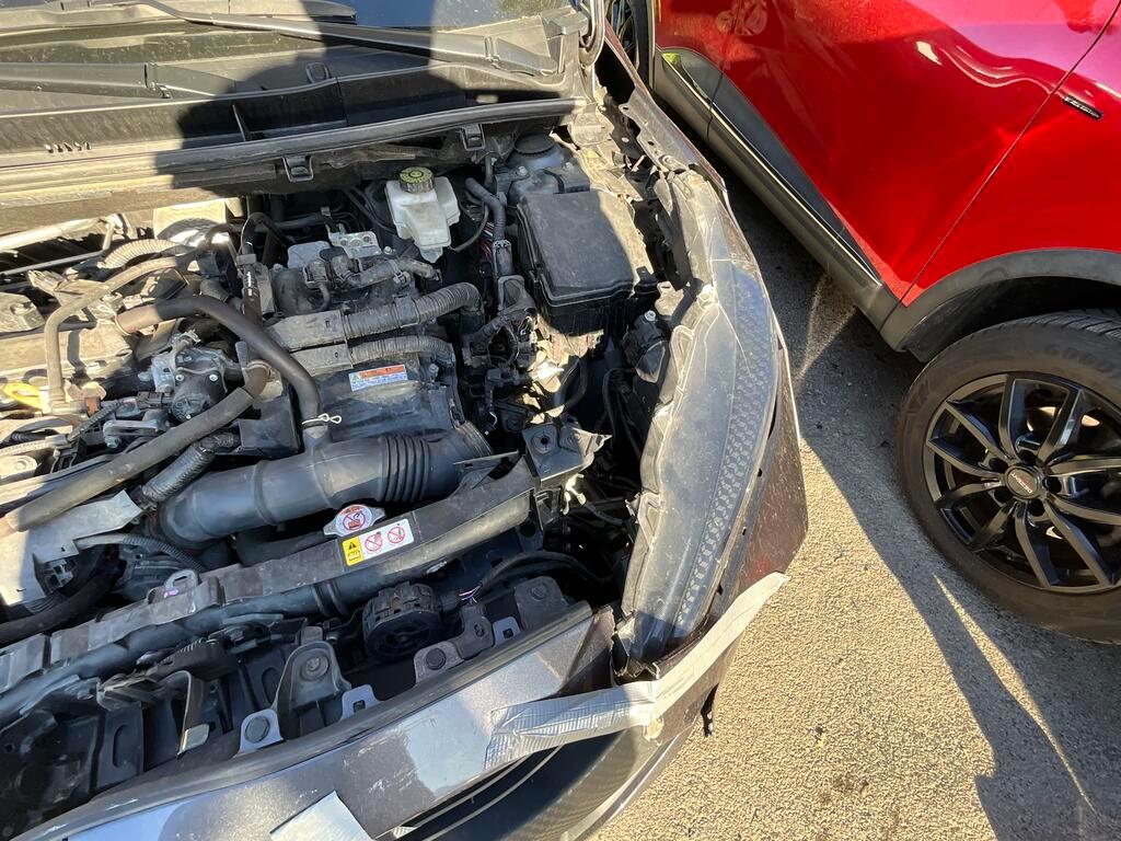 Collision avant : Pare-chocs, calandre, moulures, capot, radiateur, condenseur, tôle frontale, ventilateur et longeron gauche endommagés. / Préexistant pas constaté
