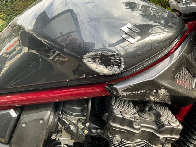 Kraftstofftank deformiert. Kraftstofftank Lackbeschädigung. Sitzpolster ausgebleicht.