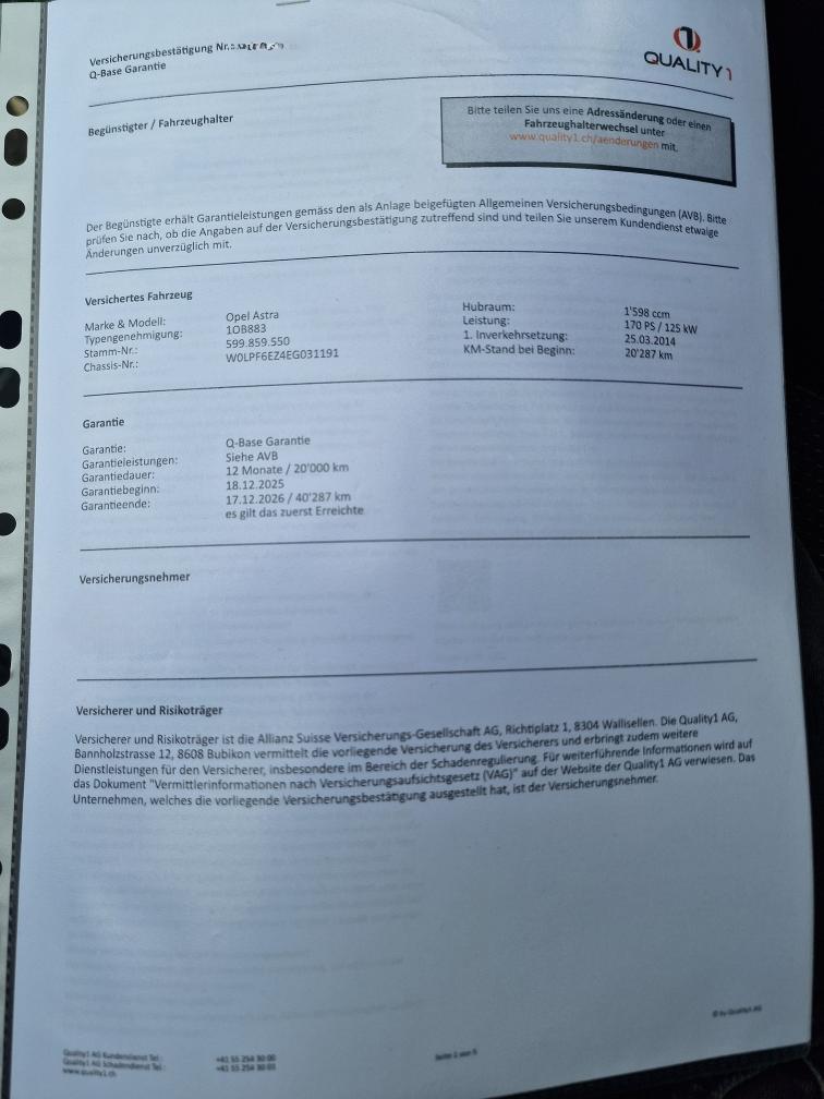 - laufende Quality Garantie gemäss Foto - Aussen und Innen kleinere Gebrauchsspuren gemäss Fotos - Fahrzeug noch im Kundenbesitz - Kein Eintauschtest / Diagnose durchgeführt - keine Nachverhandlung und / oder Nachwährschaft