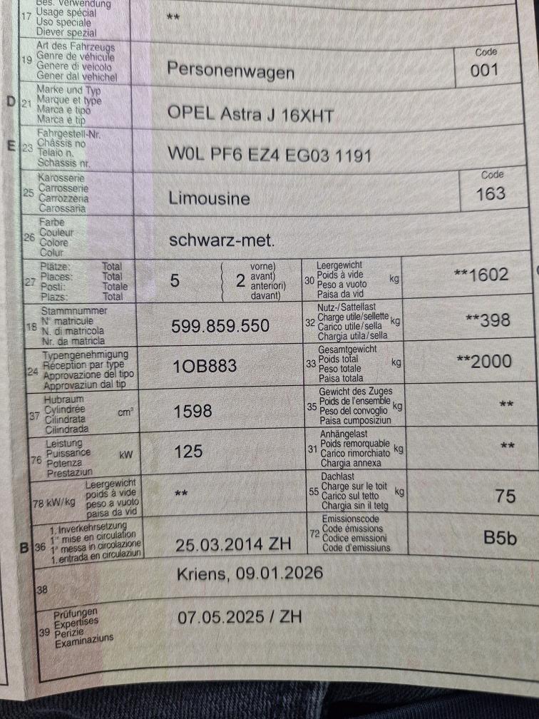 OPEL Astra J 16XHT