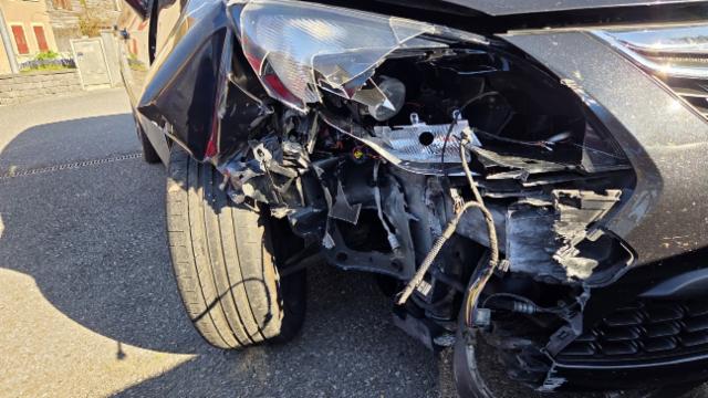 Front eingedrückt. Front rechts eingedrückt. Kotflügel vorne rechts eingedrückt. Frontblech/Maskenblech eingedrückt. Radhaus vorne rechts eingedrückt / gestaucht.