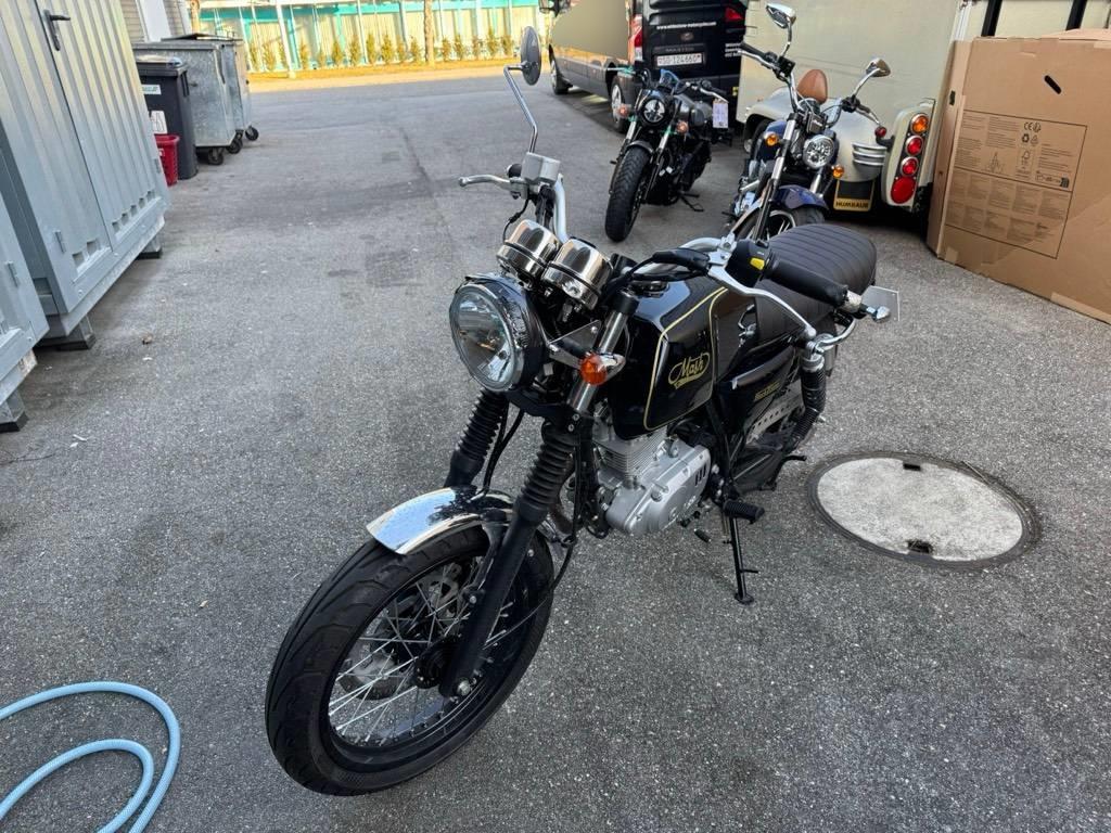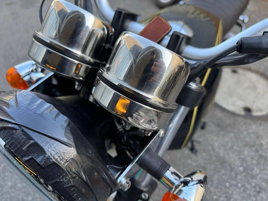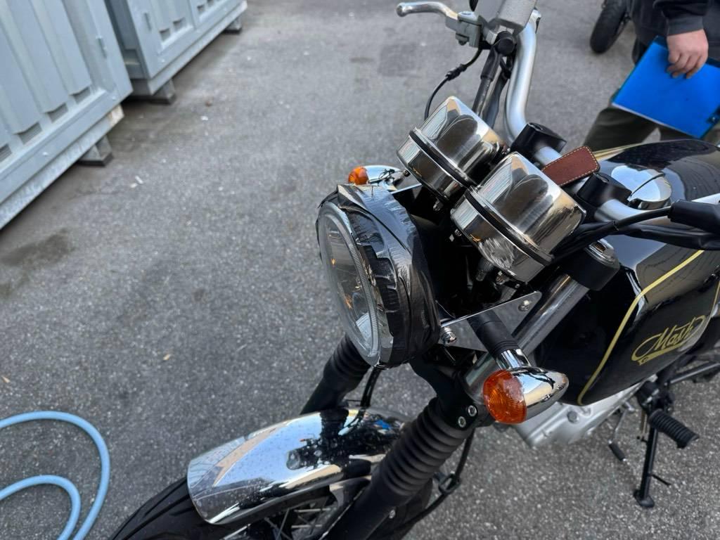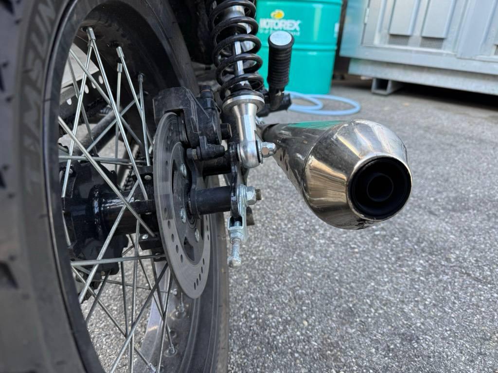 Armaturen, Auspuffkollektor, Auspufftopf, Aussenspiegel links, Aussenspiegel rechts, Diverse Anbauteile, Fussraster rechts, Gabelholm, Griff rechts, Heckverkleidung, Kupplungsgehäuse, Lenker, Rad hinten, Rad vorne, Rücklicht rechts, Schwinge, Verschalungen rechts