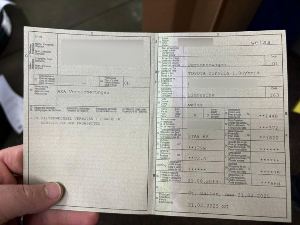 Media: Multimedia Audiosystem Toyota Touch, Sitze: Beifahrersitz höhenverstellbar, Elektronische Parkbremse, Media: 6 Lautsprecher, Räder: Reifenreparatur-Set (Tire Fit), Airbag: Airbag Fahrer und Beifahrer, Scheibenwischer vorne mit Intervall, Ablagen in den Türen, Gurtkontrolle, Polster: Stoff-Ausstattung, Pollenfilter (Staubfilter), Assist: Adaptiver Tempomat ACC, Sitze: Rücksitzlehne geteilt abklappbar, Assist: Müdigkeitserkennung, Licht: LED Heckleuchten, Servolenkung, Räder: TPMS Reifendrucküberwachungssystem, Katalysator geregelt, Info-Display, Licht: LED Nebelscheinwerfer, Lenkrad: Lenkrad, Schaltknauf und Handbremshebel Leder, Wegfahrsperre elektronisch, Getönte Scheiben, Garantie: 3 Jahre/100 000 km - Lackgarantie 3 Jahre/Kilometer unbegrenzt - Duchrostungsgarantie 12 Jahre/Kilometer unbegrenzt, Lenkrad: Lenkrad längs- und höhenverstellbar, Mittelarmlehne vorne, Licht: Nebelschlussleuchte, Kofferraumbeleuchtung, Media: DAB+ (Digital Audio Broadcasting), Assist: Spurhalteassistent, Fernlichtassistent, Verkehrsschilderkennung, Airbag: Knie-Airbag für Fahrer, Getriebe: Stufenloser Automat, Assist: Pre-Crash-Sicherheitsystem, Airbag: Window-Kopfairbags, ISOFIX Kindersitzvorrichtung, Assist: Rückfahrkamera, Mittelarmlehne hinten, ABS, EBD elektronische Bremskraftverteilung, Kopfstützen hinten höhenverstellbar, Teppichfussmatten, Licht: Drittes Bremslicht, Bremsassistent (BAS), Airbag: Seitenairbag für Fahrer und Beifahrer, Start-/Stop-Knopf, Wärmeschutzverglasung, Elektrische Fensterheber vorne + hinten mit Komfortschliessung, Sitze: Fahrersitz höhenverstellbar, Innenspiegel automatisch abblendbar, Zentralverriegelung mit Fernbedienung, Start-/Stop-Automatik, 3-Punkt-Sicherheitsgurte auf allen Plätzen, Airbag: Airbag Beifahrer deaktivierbar, Stabilitäts- und Traktionskontrolle (VSC und TRC), Klima: 2-Zonen-Klimaautomatik, Kopfstützen vorne höhenverstellbar, Lenkrad: Multifunktionslenkrad beheizbar, LED Blinker im Aussenspiegel, Aussenspiegel rechts und links beheizbar und elektrisch verstellbar, Licht: Frontscheinwerfer rund, Räder: 4 Leichtmetallfelgen 16J mit Pneu, Räder: Radzierblenden