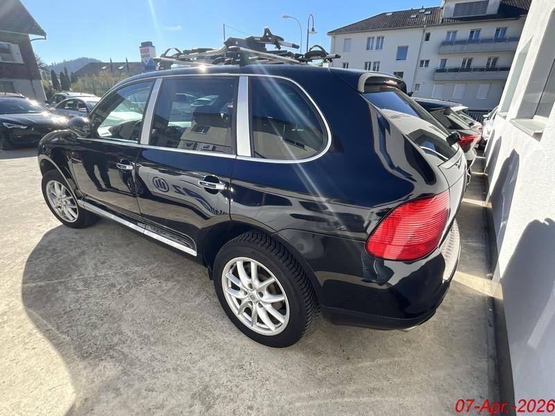 Audiosystem CDR-31, Wartungsintervall-Anzeige, Aussentemperaturanzeige, Oeldruckanzeige, Zentralverriegelung mit Fernbedienung, Airbag: Airbag Fahrer und Beifahrer, Antiblockiersystem (ABS), Adaptives Bremslicht, Höhenverstellbare Gurten vorne, Airbag: Seitenairbag für Fahrer und Beifahrer, Tankdeckel-Entriegelung von innen, Scheibenwischer vorne mit Intervall, Licht: LED Heckleuchten, ISOFIX Kindersitzvorrichtung, Vordersitze höhenverstellbar, Getriebe: 6-Gang-Getriebe, Polster: Leder-Ausstattung, Räder: Reifenreparatur-Set mit Kompressor, Automatikgurt in Fondmitte, Antriebsschlupfregelung (ASR), Fussraumbeleuchtung vorne und hinten, Getönte Scheiben, Bordcomputer, 3-Punkt-Sicherheitsgurte auf allen Plätzen, Lenkrad: Lenkrad längs- und höhenverstellbar, Assist: Tempomat, Vorbereitung für Anhängevorrichtung, Bremsbelag-Verschleissanzeige, Assist: Seitenaufprall-Schutzsystem, Türgriffe aussen in Wagenfarbe, Airbag: Airbag Beifahrer deaktivierbar, Ablagefach in Armlehne hinten, Bremsassistent (BAS), Klimatisierungsautomatik, Mittelkonsole mit Ablagefach, Airbag: Window-Kopfairbags, Licht: LED Blink- und Positionsleuchten, Gurtwarneinrichtung für Fahrer- und Beifahrersitz, Metallapplikationen, Fahrstabilisierungssystem Porsche - Stability-Management (PSM), Dachspoiler, Gurtstraffer vorne und hinten, Auspuffanlage mit 2 Endrohren (links und rechts), Assist: Porsche Traction Management (PTM), Heckscheiben-Wisch-/Waschanlage, Bremssättel schwarz lackiert, Leseleuchten hinten, Zweiklanghorn, Sitze: Komfortsitze vorne elektr. verstellbar, Digital Uhr, Wegfahrsperre elektronisch, Lackierung: Uni-Lackierung, Laderaumabdeckung, 4 Leichtmetallräder Cayenne Rad 18J, Licht: Nebelschlussleuchte, Steckdose, Katalysator geregelt, Armauflage Mittelkonsole vorn mit integriertem Ablagefach, Elektronische Parkbremse, Drehzahlmesser, Ausstiegsleuchten in den Türen, Servolenkung, Allradantrieb permanent, Sitze: Rücksitzlehne geteilt abklappbar, Innenlicht-Abschaltverzögerung, Tageskilometerzähler, Leseleuchten vorne, Steckdose 12V, Diebstahlwarnanlage mit Innenraumüberwachung, Heckscheibenheizung, Aussenspiegel rechts und links beheizt, elektrisch verstell- / und einklappbar, 3 Kopfstützen hinten, Multifunktionsanzeige, Reduktionsgetriebe, Licht: Fahrlichtassistent (automatisches Fahrlicht), Kofferraum-Entriegelung von innen, Elektrische Fensterheber vorne + hinten, Aktivkohlefilter