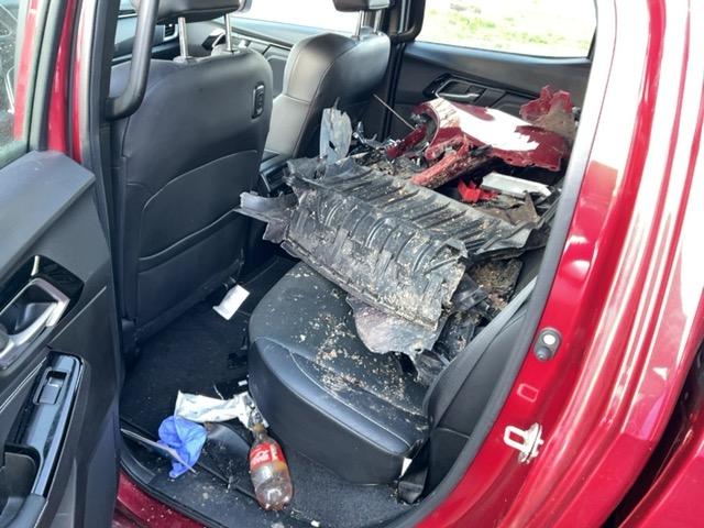 Pare-brise, phares, feux arrière gauche, pare-chocs avant et arrière, toit, capot, ailes, portes, marches-pied, coffres et couvercle coffre rayées, tôles frontales, longerons-châssis, passages de roue, radiateur, condenseur, ventilateur, contrôler moteur et boîte à vitesses, suspensions, roues etc....... - LISTE NON EXHAUSTIVE / Dommages préexistants: Intérieur sale.